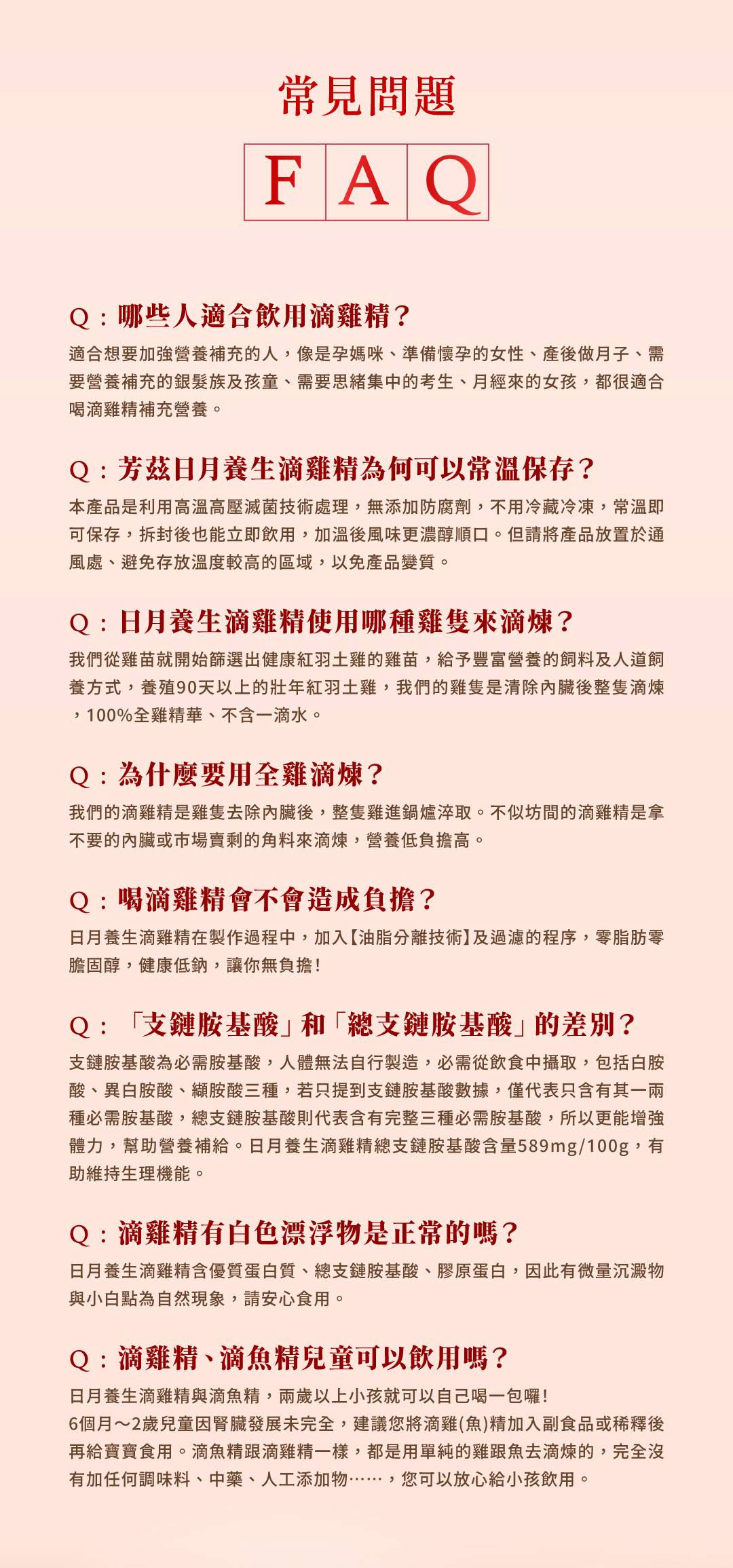 .有效抗疲勞,全台首支健字號人體實證.10 項國內外大獎加持,品質看得見!.100%全雞新鮮滴煉,絕不含一滴水.0脂肪0膽固醇,健康無負擔.天然低鈉,6個月以上寶寶副食品也適用