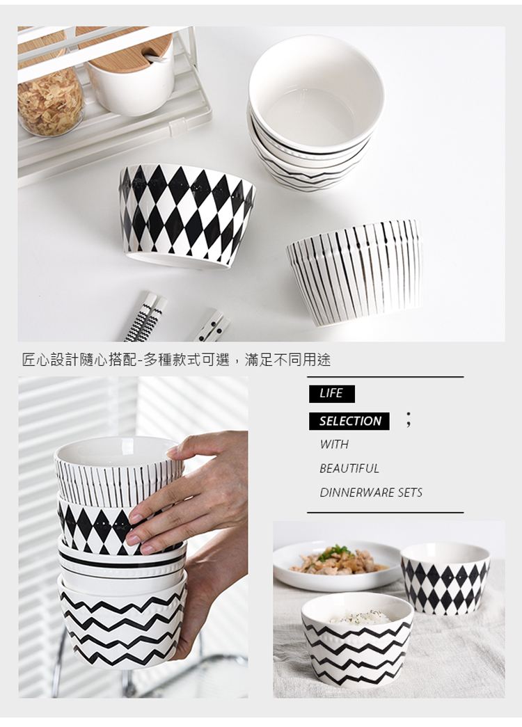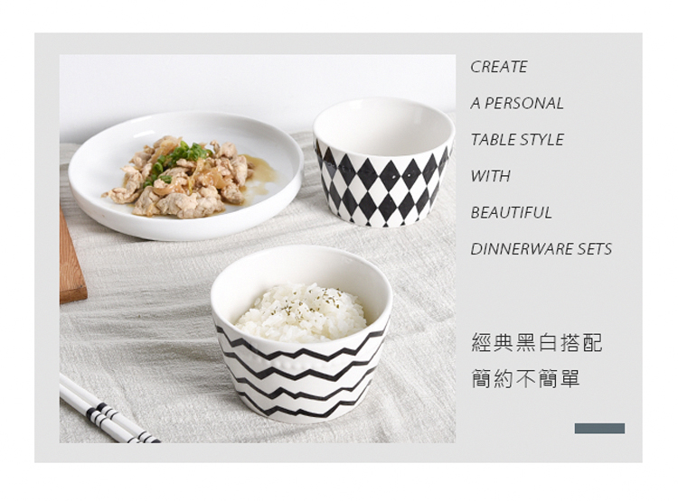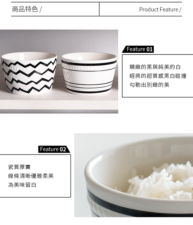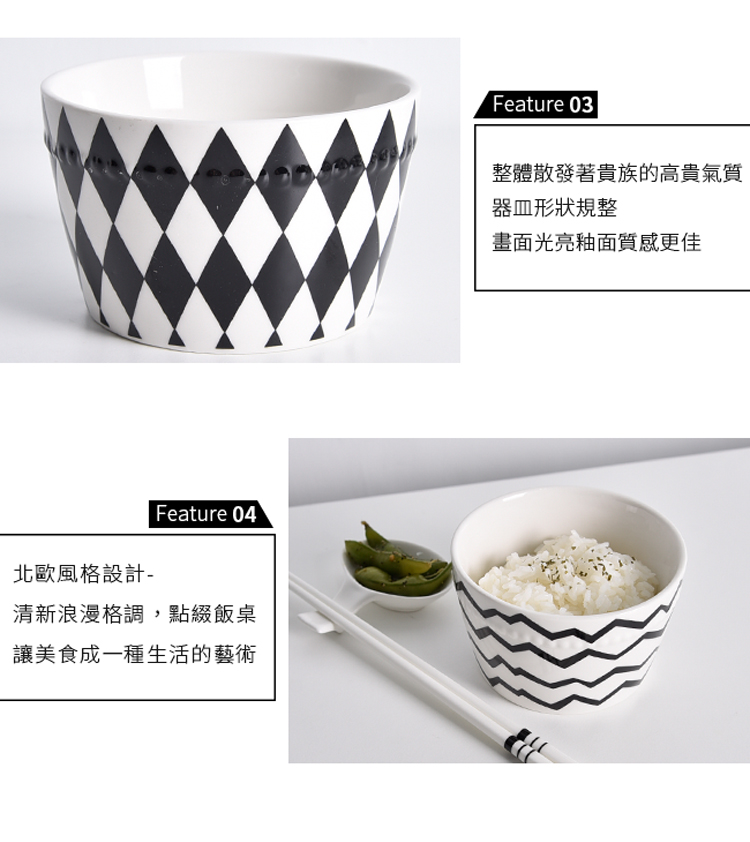 ★經典黑白搭配簡約不簡單■精緻的黑與純美的白經典的超質感黑白碰撞,勾勒出別緻的美■低調法式復古韵味的時代優雅美感■瓷質厚實,線條清晰優雅柔美為美味留白■色彩清亮明麗黑白瓷器,碰撞出絕佳質感和亮度■北歐風格設計-清新浪漫格調點綴你的飯桌,讓美食成一種生活的藝術■選用優質陶瓷高溫燒制,易清洗隔熱佳經久耐用■整體散發著貴族的高貴氣質,器皿形狀規整,畫面光亮釉面質感更佳■匠心設計隨心搭配-多種款式,滿足不同用途