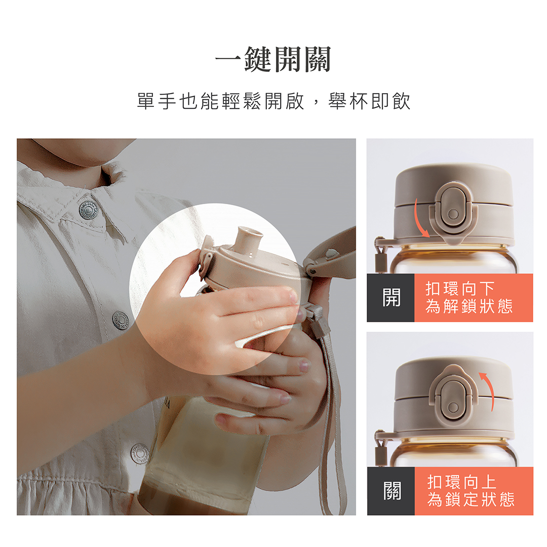 ●一鍵開關,單手也能輕鬆開啟,舉杯即飲。