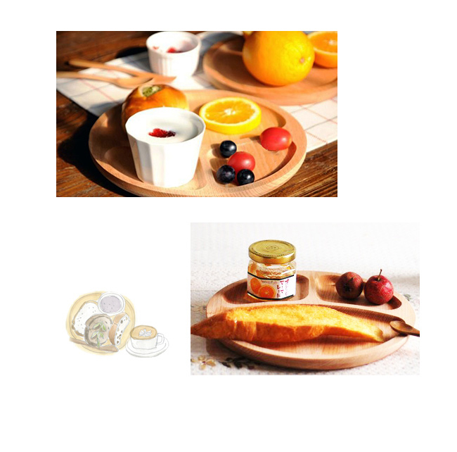 ★早餐午茶風格餐盤■日系風格溫潤木感■三格分盤設計■餐點分放美味倍增
