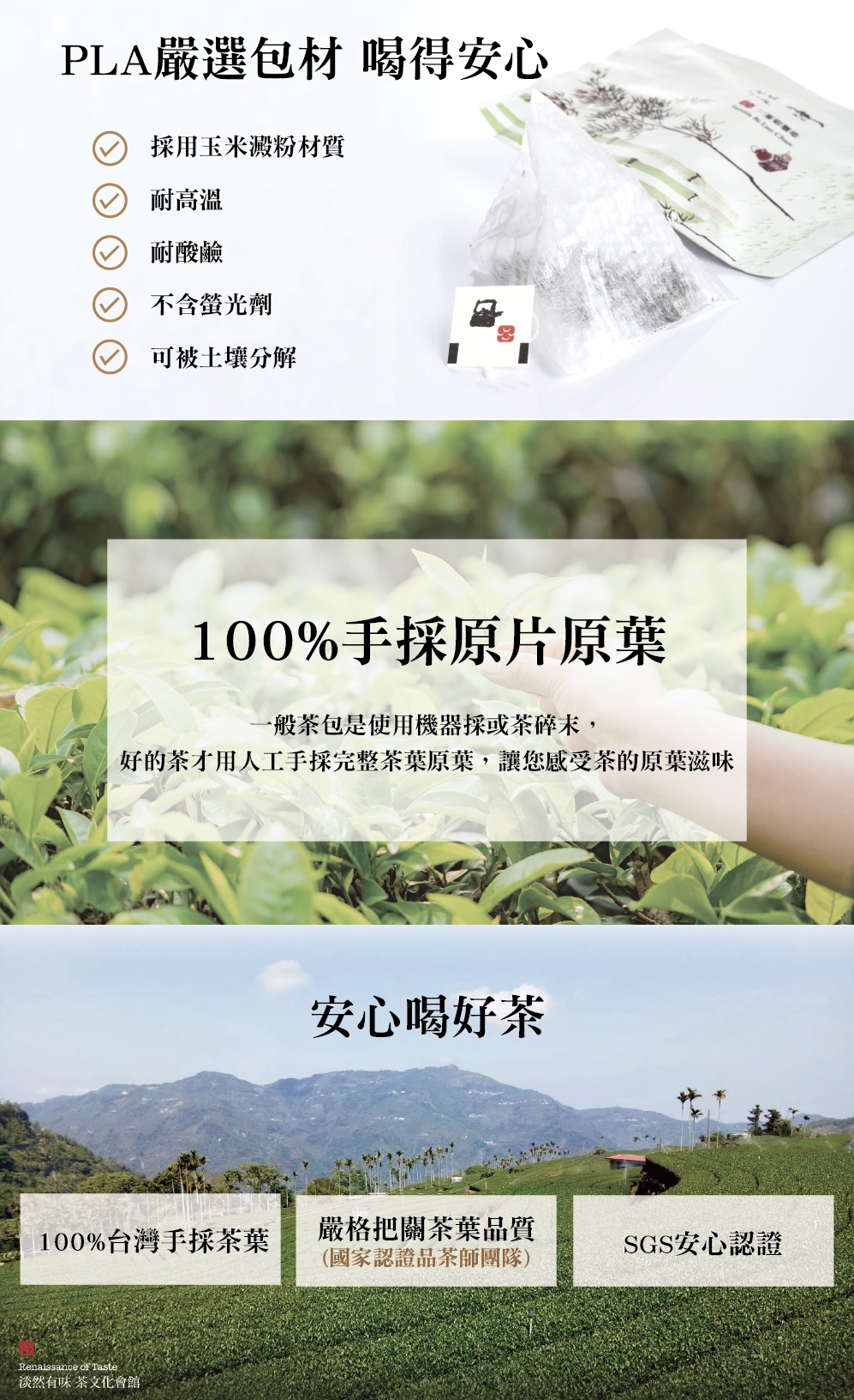 .【 茶香描述 】獨特的蜜香及熟果香,帶沁透涼氣.【 口感描述 】甘醇順口.【 發酵度 】中~重發酵 .【 焙火度 】中焙.【 袋茶包 】茶包使用PLA玉米澱粉材質,環保又安心.【 茶罐設計 】榮獲紐約 How Magazine 全球百大設計獎.【 茶罐材質 】鐵罐配上白松木蓋及使用食用級矽膠圈,可安心存放其他食品