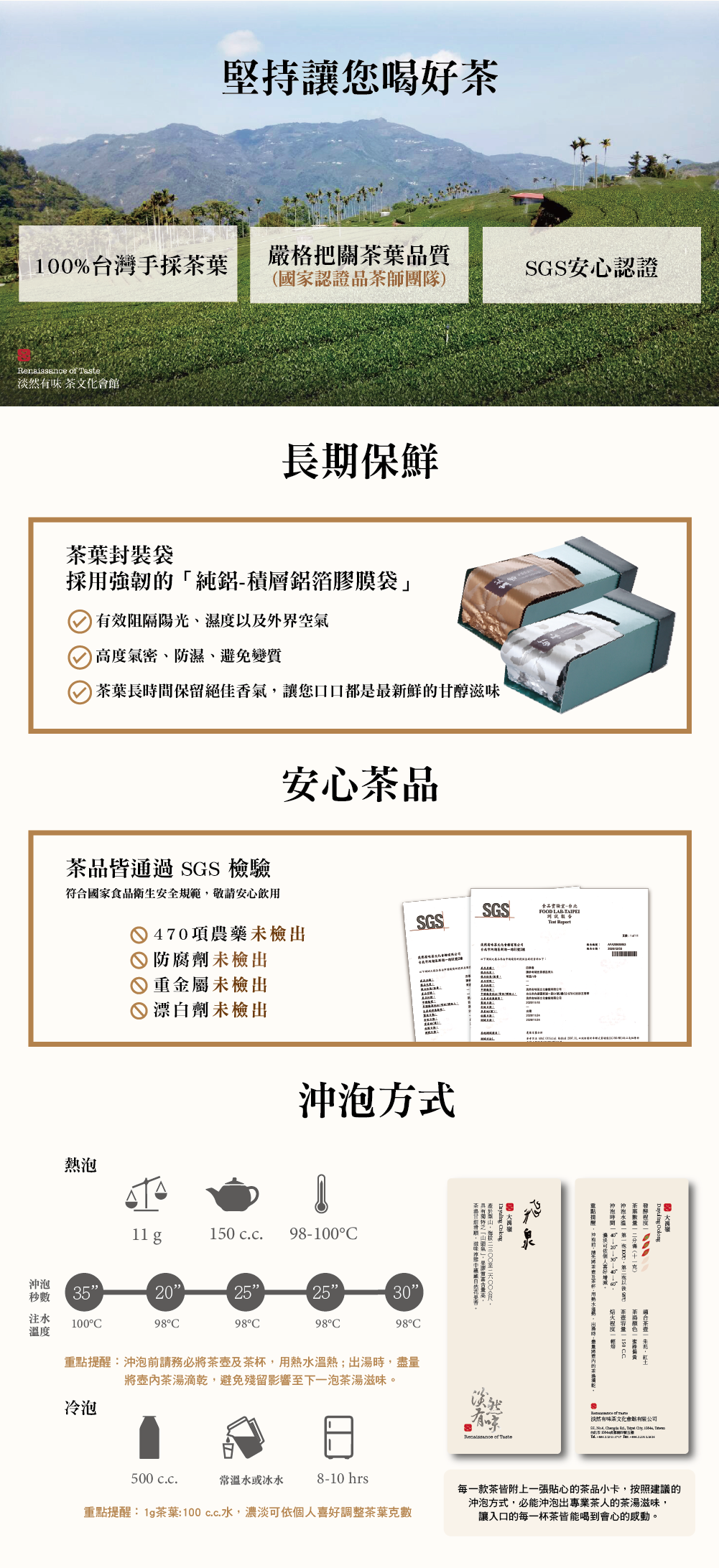 .【 茶香描述 】桂花優雅的清香,帶有豆香的清爽.【 口感描述 】鮮爽回甘生津 .【 發酵度 】無發酵 .【 焙火度 】無焙火.【 袋茶包 】茶包使用PLA玉米澱粉材質,讓您處處安心喝好茶.【 茶罐設計 】榮獲紐約 How Magazine 全球百大設計獎.【 茶罐材質 】鐵罐配上白松木蓋及使用食用級矽膠圈,可安心存放