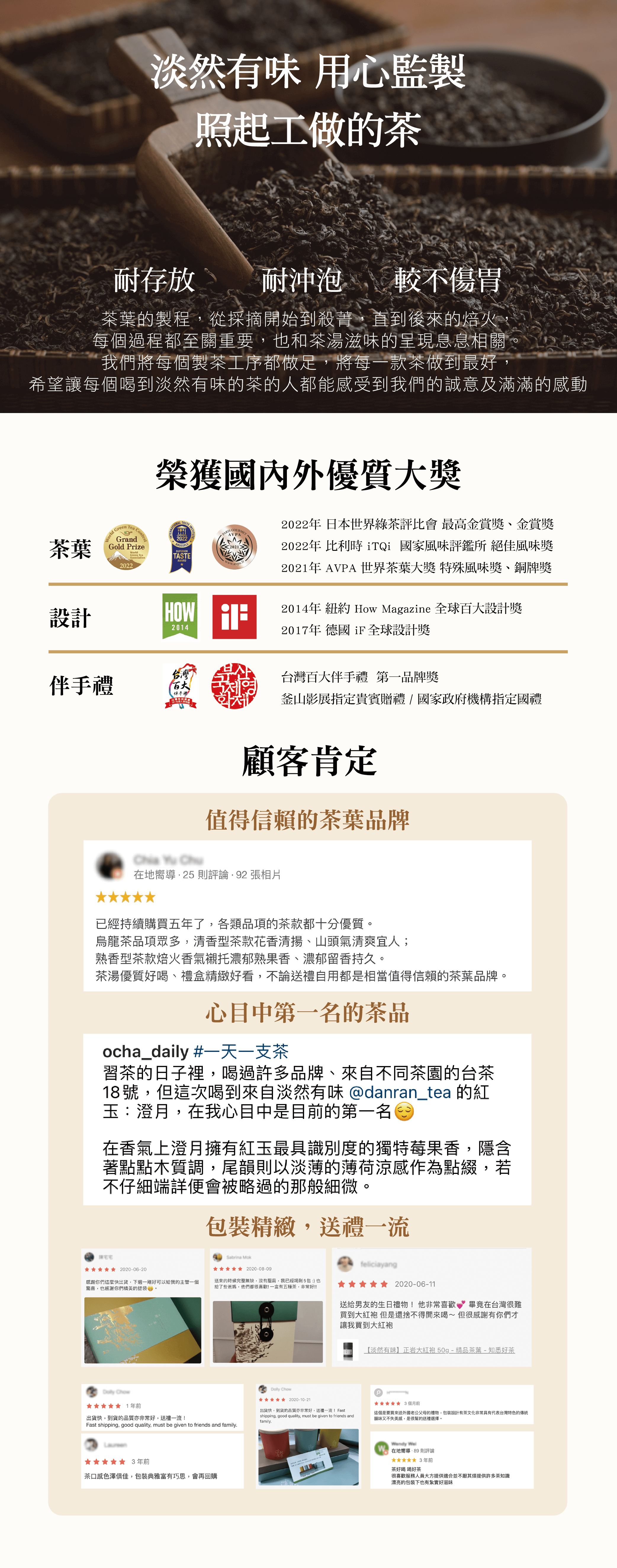 .【 茶香描述 】濃郁奶香,加上清香高山氣.【 口感描述 】甘甜滑潤,奶油般口感 .【 發酵度 】輕發酵 .【 焙火度 】輕焙.【 袋茶包 】茶包使用PLA玉米澱粉材質,讓您處處安心喝好茶.【 茶罐設計 】榮獲紐約 How Magazine 全球百大設計獎.【 茶罐材質 】鐵罐配上白松木蓋及使用食用級矽膠圈,可安心存放