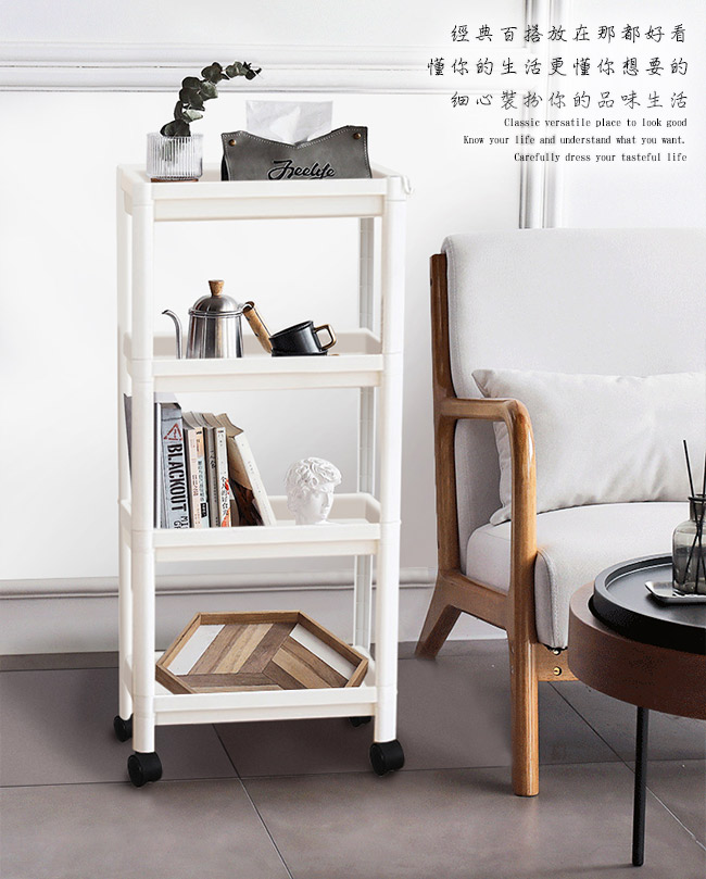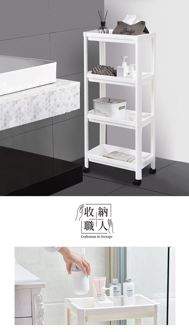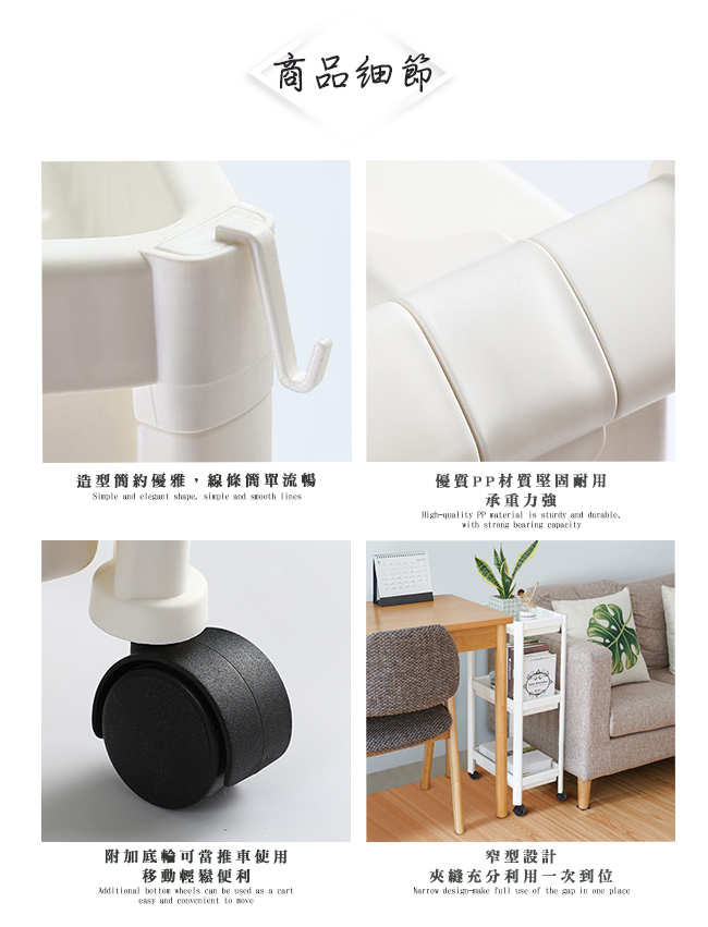 ★行走多功能收納移動隨心■造型簡約優雅,線條簡單流暢■分層收納一層一類,收納有序不凌亂■附加底輪可當推車使用,移動輕鬆便利■優質PP材質堅固耐用,承重力強■窄型設計-夾縫充分利用一次到位■適用生活中的任意角落