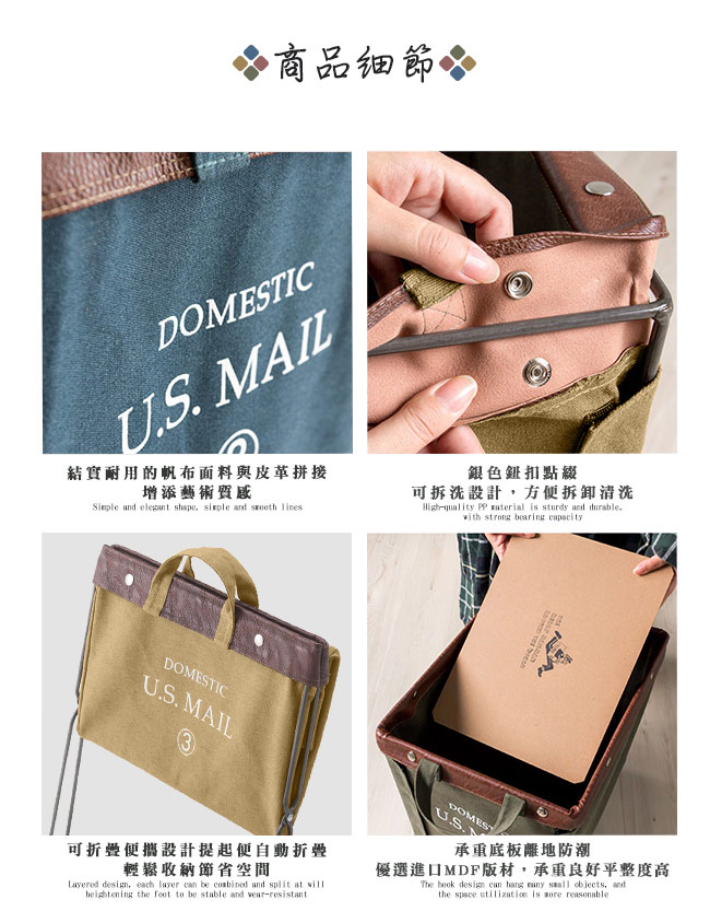 ★以復古美學鑲嵌生活■結實耐用的帆布面料與皮革拼接,增添藝術質感■銀色鈕扣點綴觸覺與視覺的雙重美感■可折疊便攜設計-提起便自動折疊,輕鬆收納節省空間■承重底板離地防潮-優選進口MDF版材,承重良好平整度高■可拆洗鈕扣+魔術貼設計-方便拆卸清洗■復古仿舊的鋼鐵元素組合,工業時期復古感悄然瀰漫