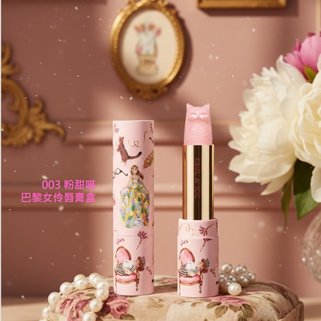 派對貓咪珍珠光限量護唇膏 003 粉甜喵 + 巴黎女伶唇膏盒