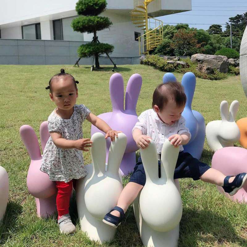 來自義大利的qeeboo,奇寶兔椅的造型結合兔子和椅子的形態,將蹲坐的兔子一雙耳朵形態設計成座椅靠背,兔子的身體則是座面的作用。椅子特殊造型,可以側靠在椅背上,騎著兔子,或者用它的耳朵托著前臂,多樣坐法,椅子也不再單調無趣。