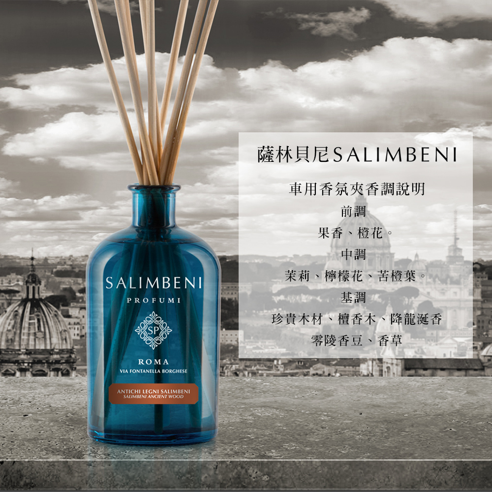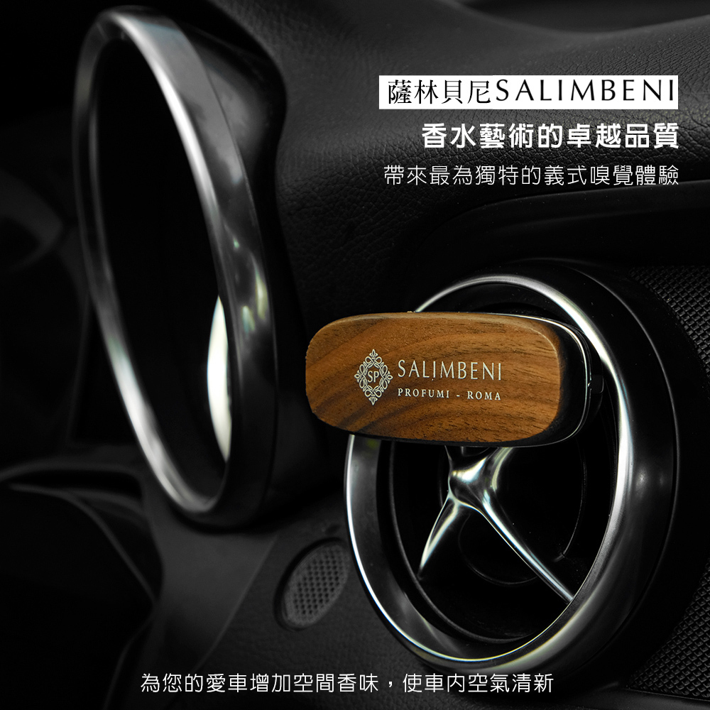 現在開始您可更加輕鬆地使用 Salimbeni 薩林貝尼香水,為您的愛車增加空間香味,使車內空氣清新。由Salimbeni Profumi 薩林貝尼開發,並獲得歐洲專利的可替換車用香氛,將精緻的義大利傳統香水生產技藝與創新技術相結合,方便隨時更換中意的香水、持續使用時間長、且不使用液體或凝膠,沒有打翻弄髒的風險。
