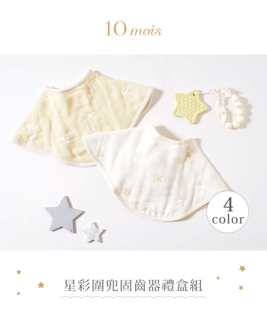 產品規格●內容物:咬咬固齒器(星星/雲朵)*1+六層紗拍嗝巾圍兜(銀河星彩/粉紅/粉藍)*1