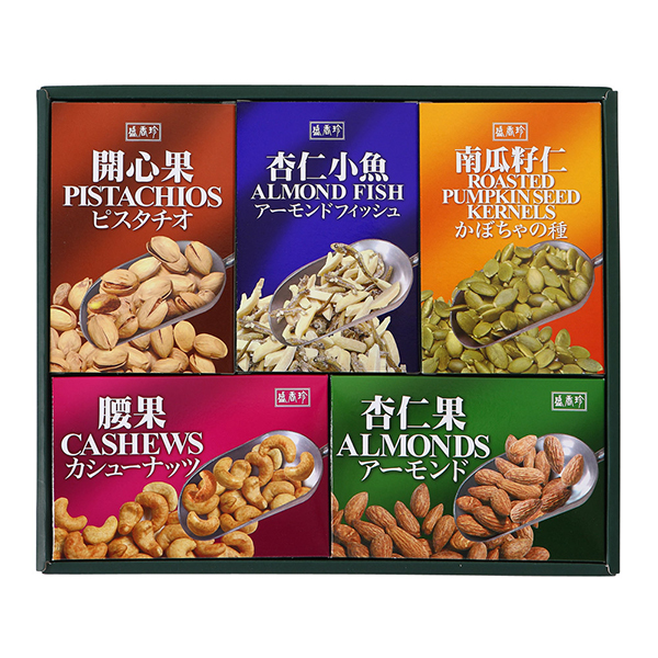 【商品規格】◎品牌: 盛香珍◎商品重(容)量:425g/盒<開心果>◎內容物名稱(成分):開心果、食鹽、L-麩酸鈉、調味劑(5’-次黃嘌呤核苷磷酸二鈉、5’-鳥嘌呤核苷磷酸二鈉)、甜味劑(甜菊醣苷、甘草萃)、香料◎食品添加物名稱:請參考內容物成份◎過敏原:本產品含有堅果(開心果)◎營養標示:每100公克-熱量580大卡/蛋白質23.6公克/脂肪40.5公克/飽和脂肪4.6公克/反式脂肪0公克/碳水化合物30.3公克/糖6.2公克/鈉654毫克<杏仁小魚>◎內容物名稱(成分):杏仁、小魚干、芝麻、食鹽、蔗糖◎食品添加物名稱:請參考內容物成份◎過敏原:本產品含有堅果(杏仁)、芝麻、魚類(小魚干)◎營養標示:每100公克-熱量568大卡/蛋白質35g/脂肪40.9g/飽和脂肪3.7g/反式脂肪0g/碳水化合物15g/糖9.5g/鈉733毫克<南瓜籽仁>◎內容物名稱(成分):南瓜子仁、食鹽、蔗糖、L-麩酸鈉、玫瑰鹽、調味劑 (5’-次黃嘌呤核苷磷酸二鈉,5’-鳥嘌呤核苷磷酸二鈉)◎食品添加物名稱:請參考內容物成份◎過敏原:本產品含有堅果(南瓜子)◎營養標示:每100公克-熱量614大卡/蛋白質32.4公克/脂肪48.3公克/飽和脂肪8.7公克/反式脂肪0公克/碳水化合物12.4公克/糖1.3公克/鈉322毫克<腰果>◎內容物名稱(成分):腰果、蔗糖、麥芽糖漿、植物油(棕櫚油、大豆油)、焦糖粉◎食品添加物名稱:請參考內容物成份◎過敏原:本產品含有堅果(腰果)、牛乳(牛乳、乳固形物、起司)◎營養標示:每100公克-熱量608大卡/蛋白質16.7公克/脂肪45.0公克/飽和脂肪9.4公克/反式脂肪0公克/碳水化合物34.1公克/糖12.6公克/鈉8毫克<杏仁果>◎內容物名稱(成分):杏仁果、食鹽、植物油(椰子油)、麥芽糊精、蔗糖、L-麩酸鈉、葡萄糖、調味劑 (5’-次黃嘌呤核苷磷酸二鈉,5’-鳥嘌呤核苷磷酸二鈉) 、洋蔥粉◎食品添加物名稱:請參考內容物成份◎過敏原:本產品含有堅果(杏仁果、椰子油)◎營養標示:每100公克熱量-熱量 616大卡/蛋白質25.1公克/脂肪47.4公克/飽和脂肪4公克/反式脂肪0公克/碳水化合物22.2公克/糖11.8公克/鈉287毫克◎是否含肉品:否◎保存期限: 12個月◎以消費者收受日算起,至少距有效日期前_日以上:保存期限的1/4