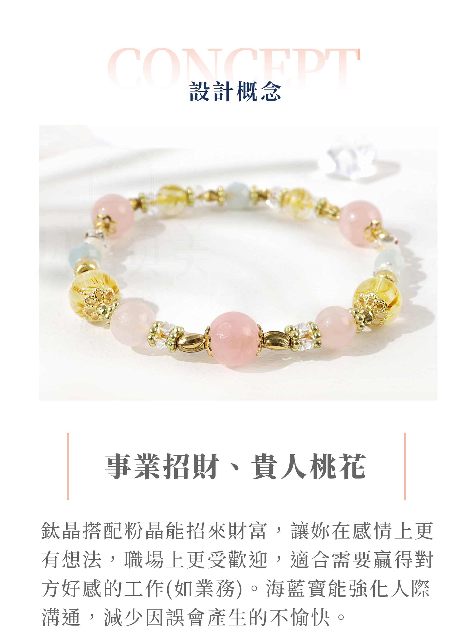 ・粉水晶、鈦晶、海藍寶、白水晶、珍珠母貝
