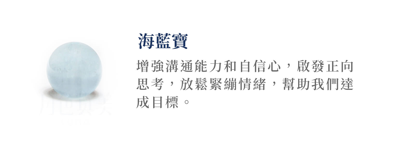 ・藍紋瑪瑙、海藍寶、紫水晶、白水晶、白玉瓍