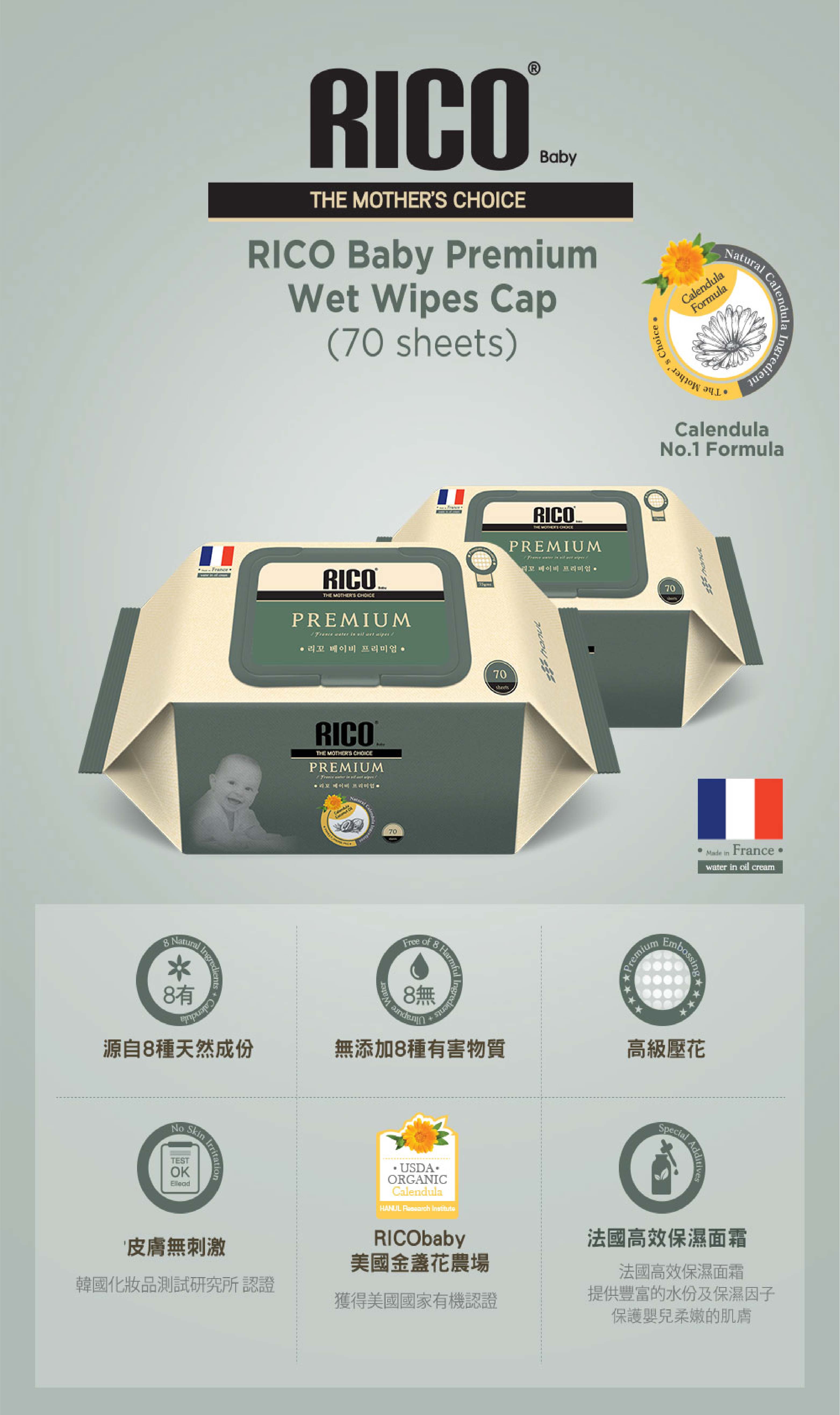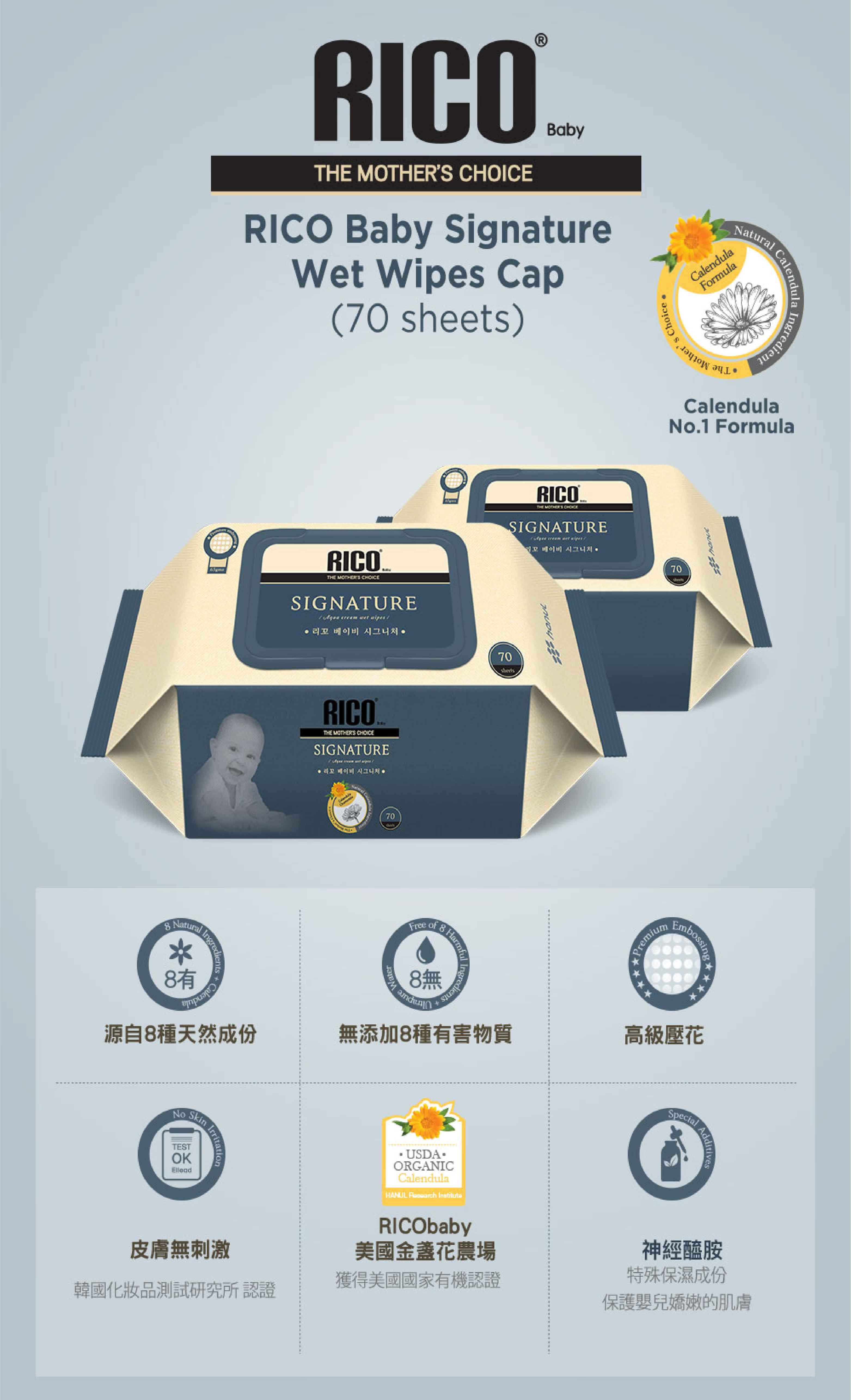 韓國 RICO baby 金盞花有機天然特厚款濕紙巾-箱購(3款可選)