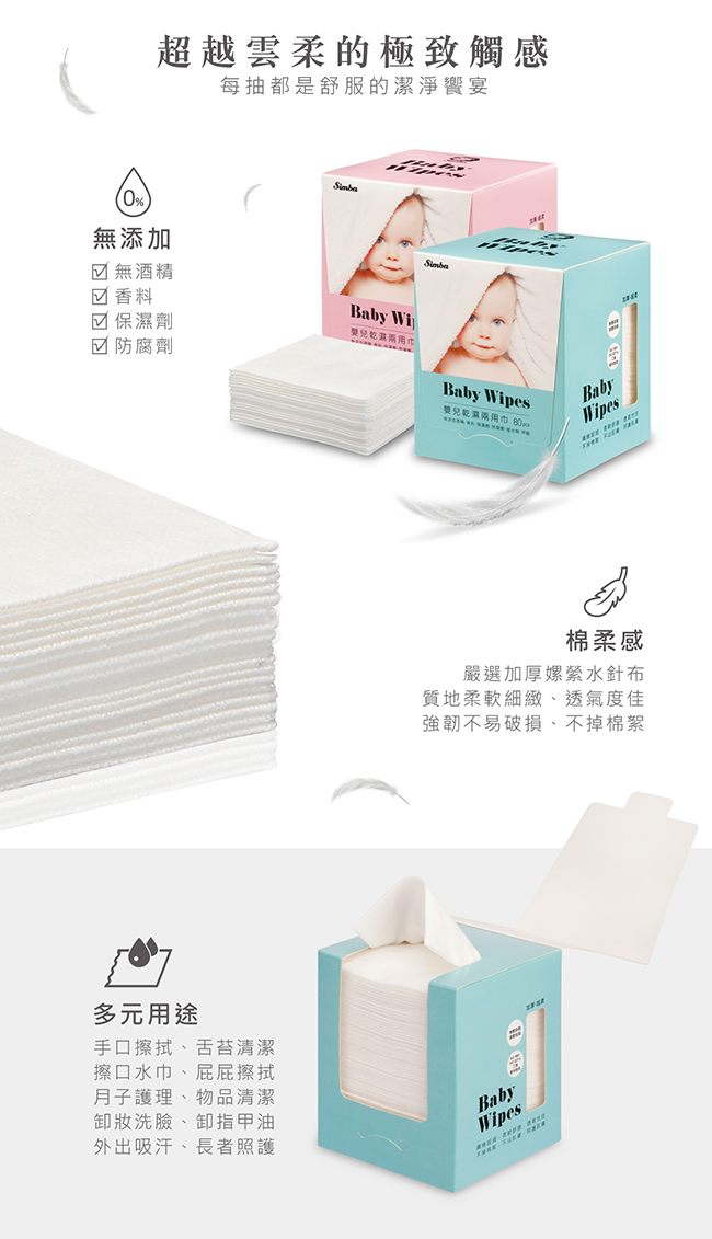 1.嚴選加厚嫘縈水針布,質地柔軟細緻,透氣度佳,強韌不易破損,不掉棉絮。