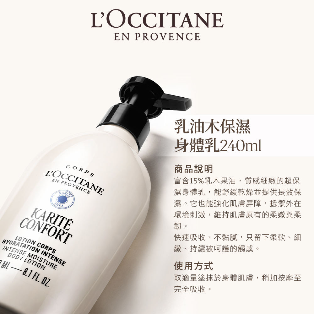 富含15%乳木果油,質感細緻的超保濕身體乳,能舒緩乾燥並提供長效保濕。它也能強化肌膚屏障,抵禦外在環境刺激,維持肌膚原有的柔嫩與柔韌。快速吸收、不黏膩,只留下柔軟、細緻、持續被呵護的觸感。
