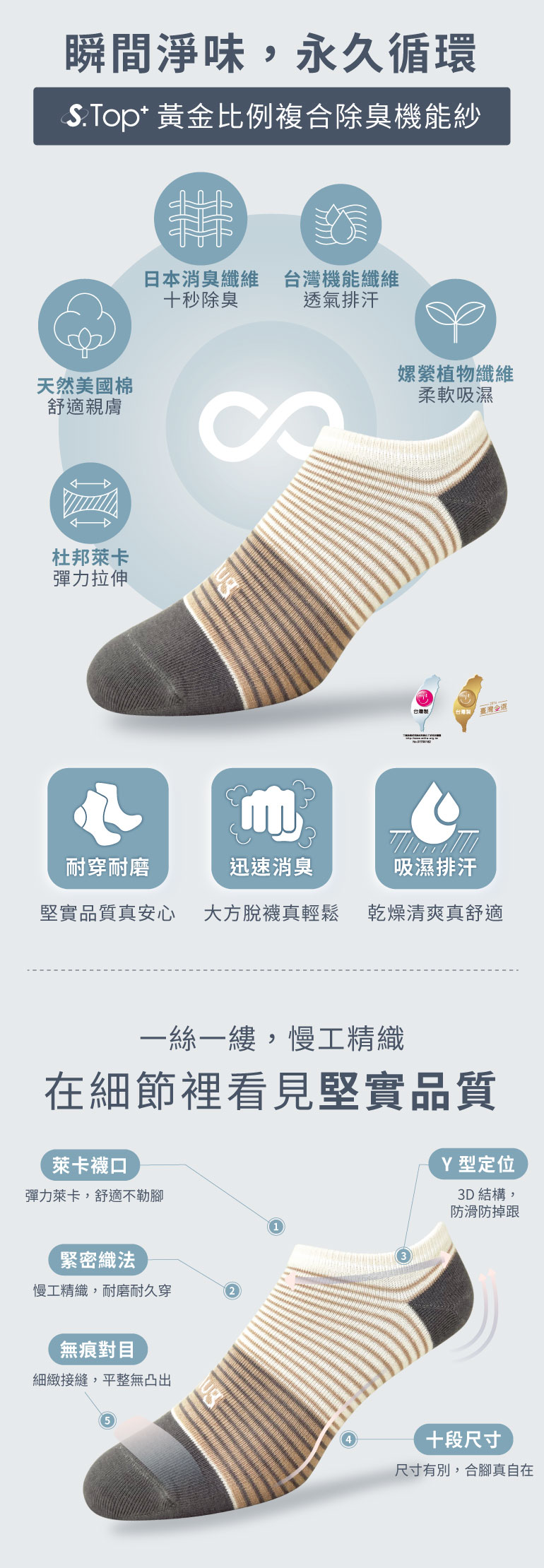 襪子成分:棉(S-Top+消臭棉)80% 、彈性纖維20%