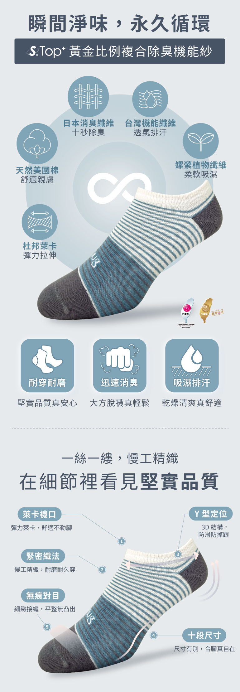 襪子成分:棉(S-Top+消臭棉)80% 、彈性纖維20%