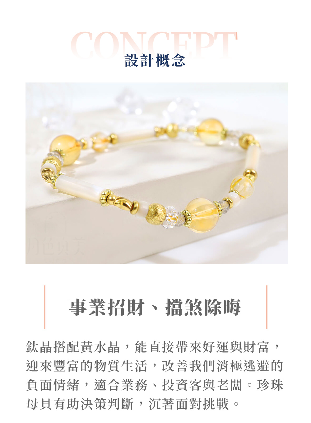 ・黃水晶、鈦晶、珍珠母貝、白水晶、拉長石