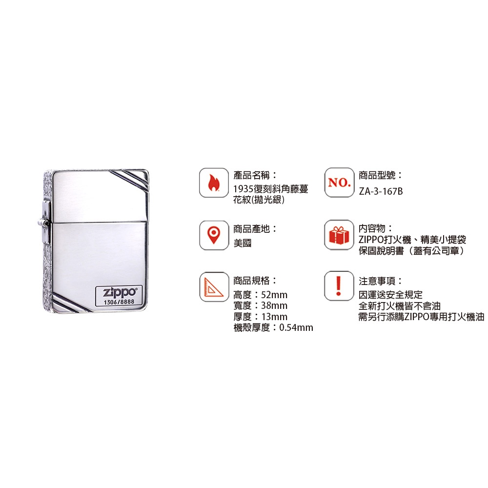 【ZIPPO】ZA-3-167- 1935復刻斜角藤蔓花紋(燻黑金/拋光銀)防風打火機|官方正版|日本設計|限量 | NearMe | 線上送禮平台『獨家支援 收禮者改選禮物』