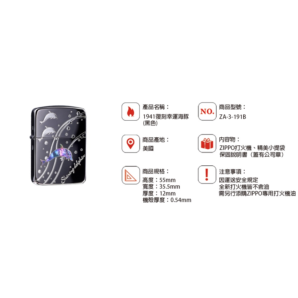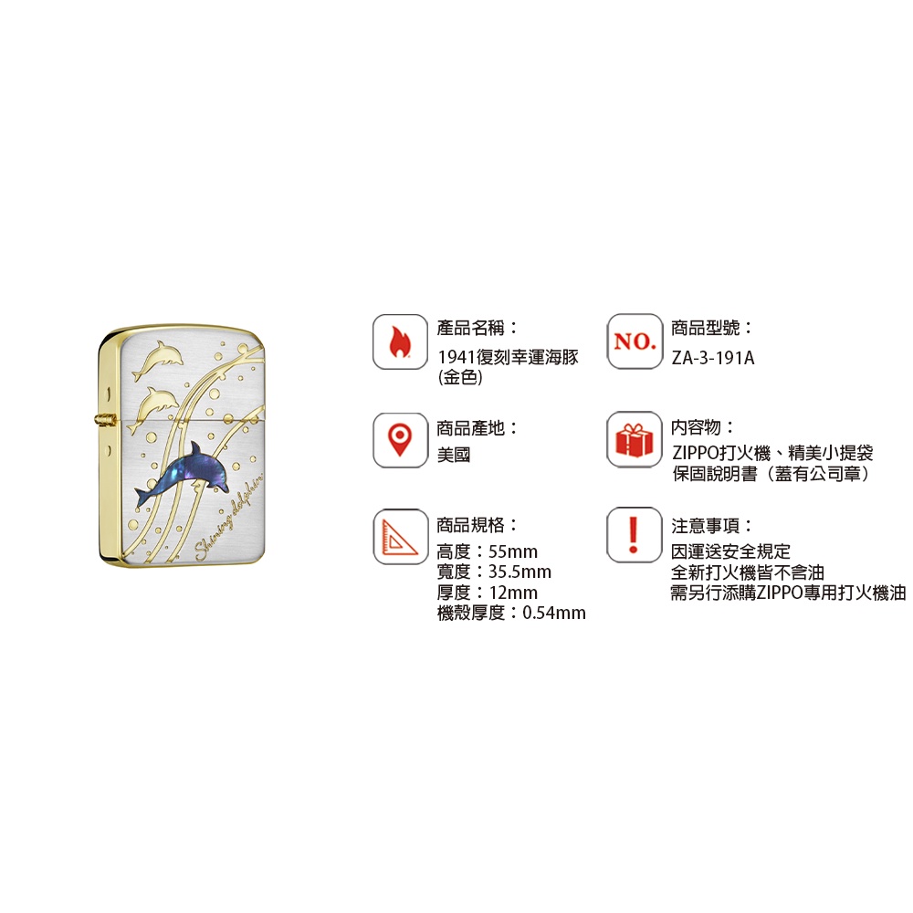 【ZIPPO】ZA-3-191- 1941復刻幸運海豚(金色/黑色)防風打火機|官方正版|日本設計|限量 | NearMe | 線上送禮平台『獨家支援 收禮者改選禮物』