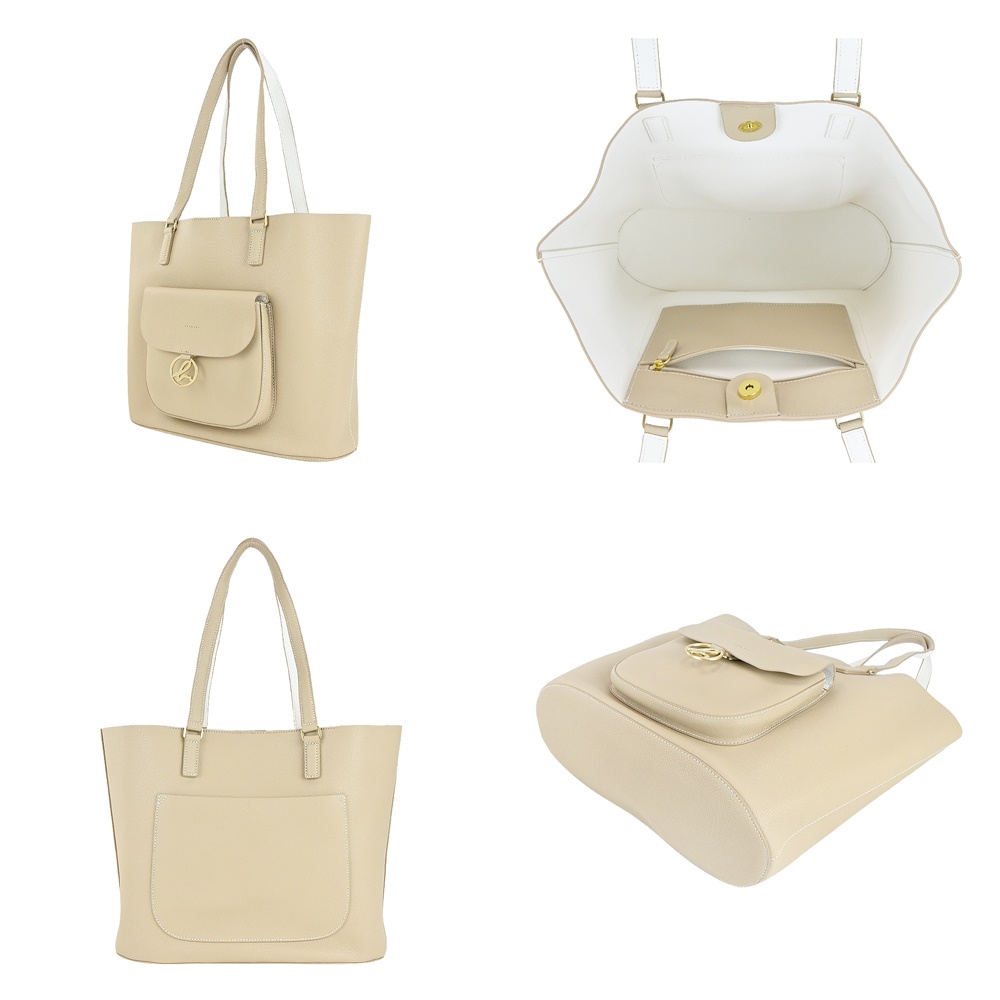 [平輸版]【agnes b.】voyage 簍空圓牌皮革大托特包(米白)真品平輸 | NearMe | 線上送禮平台『獨家支援 收禮者改選禮物』