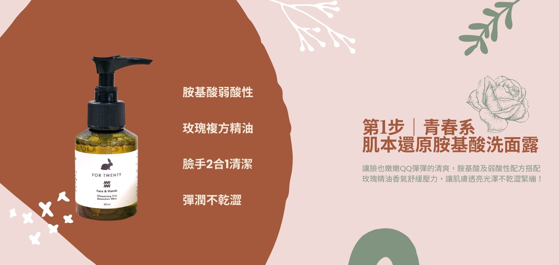 ★針對敏弱肌膚專研的胺基酸及弱酸性配方,以溫和不易刺激配方進行配方設計,讓極細緻的泡沫能將外在污垢與油脂髒污洗淨,促進角質新陳代謝,暢通肌膚與毛孔,並配合上獨家調配的玫瑰精油,使用時散發淡淡獨特的玫瑰精油香氣,可舒緩壓力讓肌膚透亮光澤不乾澀緊繃。★注重肌膚的清爽調理與肌膚剔透度與肌膚舒爽度 【肌本還原系列】 讓問題肌膚重回最初的簡單純粹,嚴選各大知名品牌特色原料, 以溫和低敏配方製成適合敏弱肌膚使用的台製平替品, 讓肌膚整新肌再次容光煥發,再次的晶透舒爽!★肌本還原系列注重肌膚的清爽調理與肌膚剔透度與肌膚舒爽度, 特別適合不喜歡黏稠感的使用者 Step0. 肌本還原胺基酸洗面露 face & hands cleansing gel 【洗臉+洗手】2合1 80ML 針對敏弱肌膚專研的胺基酸及弱酸性配方,以溫和不易刺激配方進行配方設計, 讓極細緻的泡沫能將外在污垢與油脂髒污洗淨, 促進角質新陳代謝,暢通肌膚與毛孔, 並配合上獨家調配的玫瑰精油,使用時散發淡淡獨特的玫瑰精油香氣, 可舒緩壓力讓肌膚透亮光澤不乾澀緊繃。★胺基酸界面活性劑萃取自天然的植物, 常態如甜菜、椰子、酪梨、燕麥...等, 弱酸性配方與人體皮膚ph值相近, 使用上相對溫和且因親膚性較高對於敏弱肌膚更顯舒適保濕。 ★肌本還原胺基酸洗面露,洗完臉後肌膚會有QQ感覺!│規格說明│ 80ml瓶裝 適用膚質:敏弱肌配方,各種膚質適用│主要成份│ 胺基酸介面活性劑、甜菜鹼保濕劑、甘油、玫瑰特調精油。│使用方法│ 將臉部、手部肌膚打溼後,將產品塗抹於手心滑圈至起泡沫後, 針對欲清潔部位,輕柔按摩,再以清水沖淨即可。 │保存方法│ 避免陽光直射並存放於陰涼處,開封後請於三個月內使用完畢。 │注意事項│ 無添加酒精、對羥基苯甲酸酯類(parabens), 皮膚極敏感者可先塗抹局部肌膚測試,無刺激敏感者再使用。 本產品採用植物萃取合成,請放置陰涼處保存。如有不適請停止使用並連絡皮膚科醫師。 保存期限:3年 製造日期:標示於瓶身============================================♥若希望給朋友驚喜,可連絡客服,由我們幫您填入物流配送資訊,趕快運用這項免費服務,給朋友一個好禮祝福唷!♥============================================