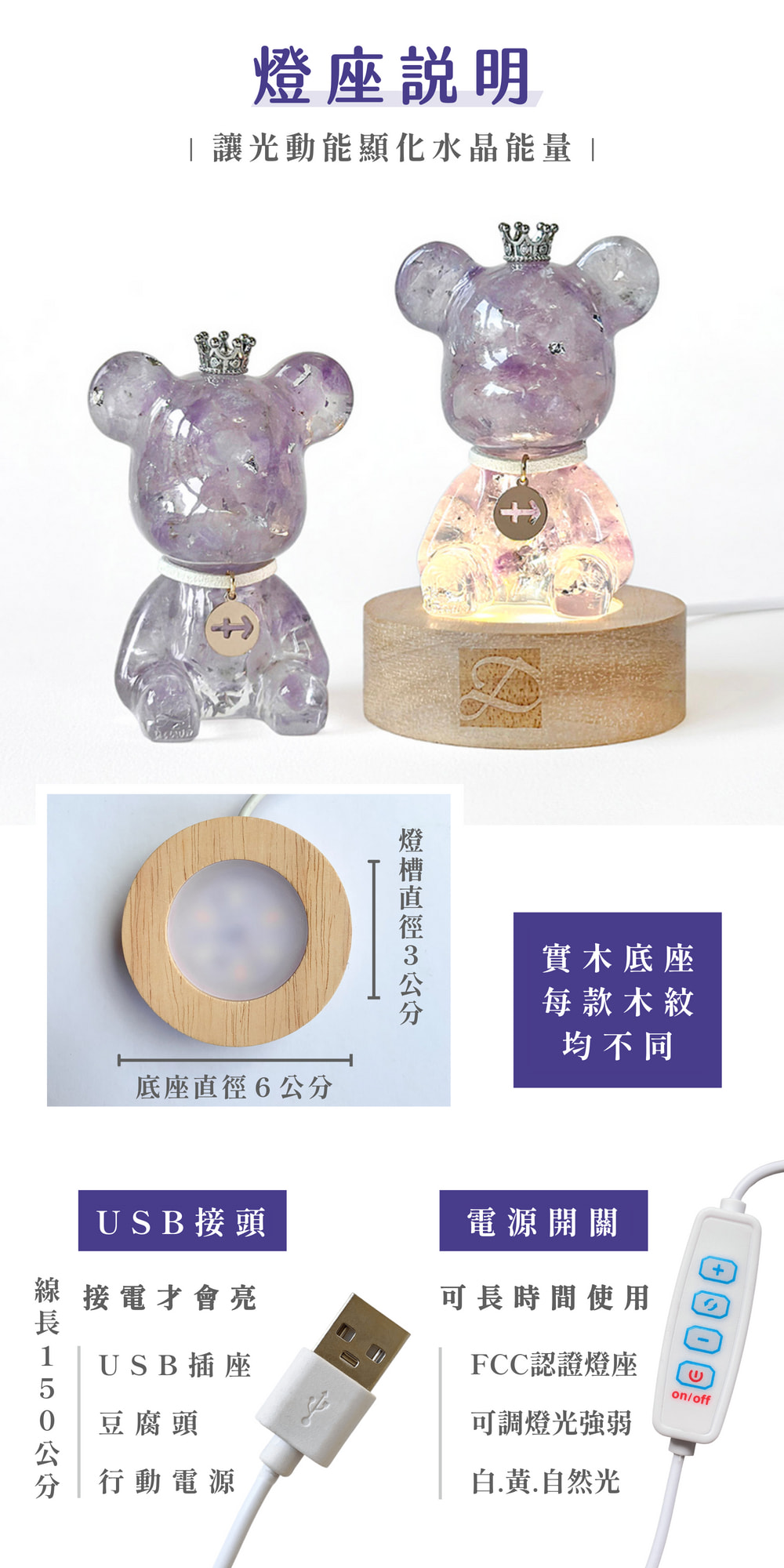 ◿ 商品內容:星座水晶熊1隻+圓形燈座1個