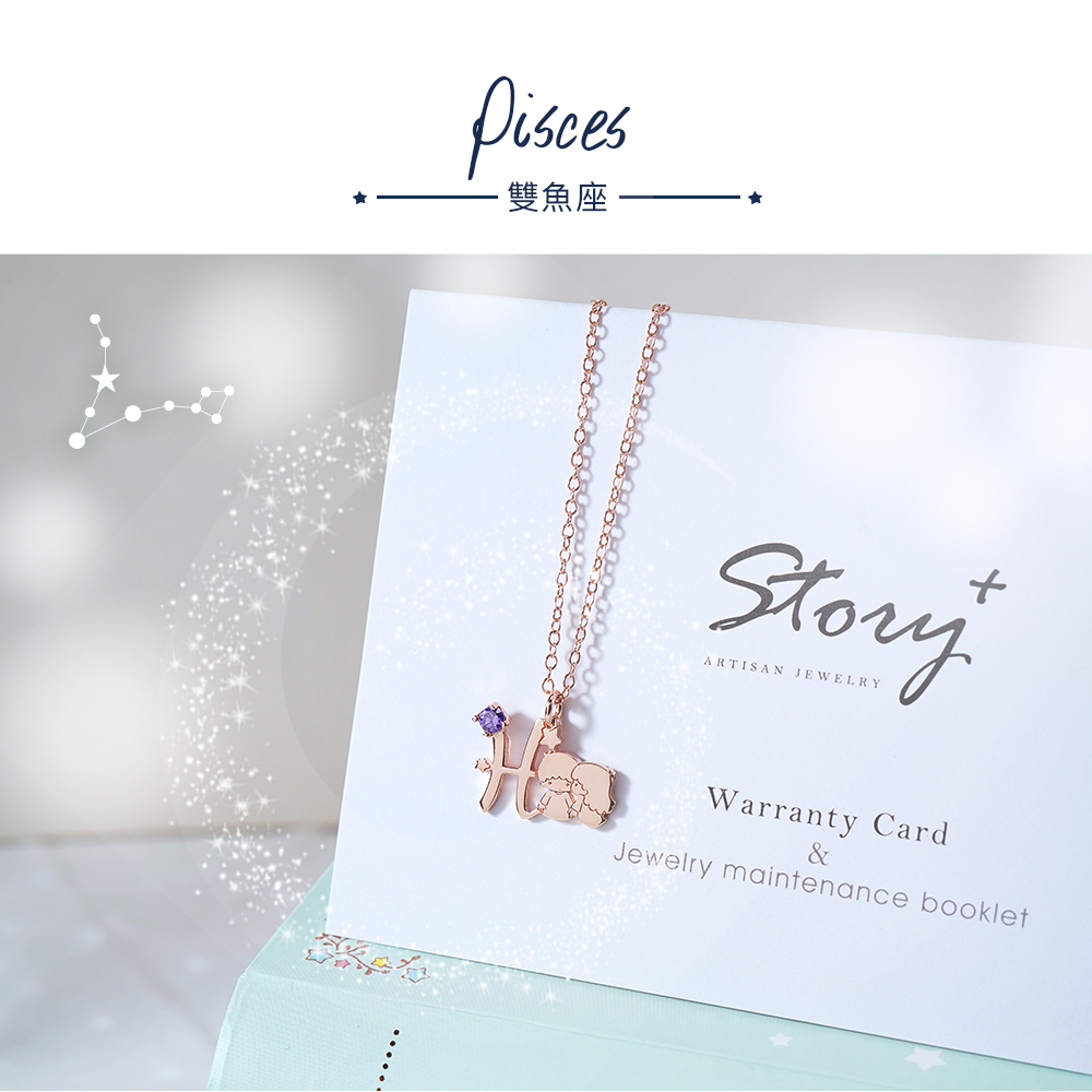 STORY故事銀飾-KikiLala星座系列-雙子星雙魚座誕生石純銀項鍊 三麗鷗SanrioXSTORY獨家授權 國際標準925純銀,精湛工藝打造星座系列 ! 搭配誕生石晶鑽點綴精緻又可愛❤️ 【商品規格】 ◆材質 : 925純銀,精鍍18K金,2.5mm鋯石 ◆顏色 : 訂製色系 ◆尺寸 : 主墜約14x9.5mm ◆其他 : 16吋純銀鍊(延長鍊須加購) ◆包裝 : 雙星仙子精裝書本盒+絨布袋+紙袋+雷射防偽貼紙+商品保固卡 【商品保固】- 保固範圍:新品瑕疵- 保卡權益:憑卡購買一年內享有免費晶亮整新一次。(晶亮整新內容:可至全省專櫃或將商品寄回,將依商品情形與規格做深層滾珠清潔或免費電鍍原色一次) (以上服務可使飾品回復原有光澤,若飾品刮傷、表面損壞、掉鑽、斷裂需焊接...等,屬維修範圍,不包含於此免費服務)