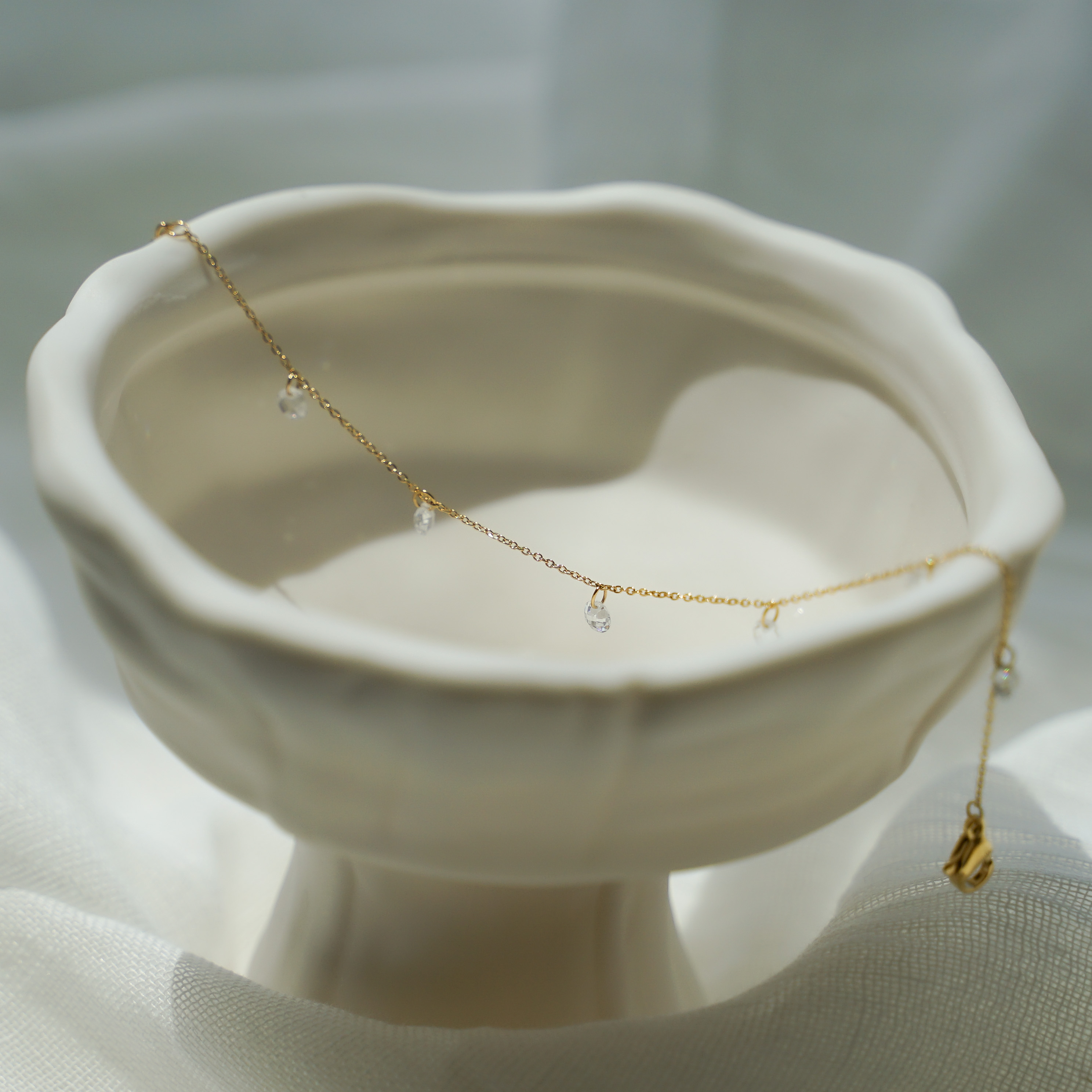 ︱設計細節︱925純銀精緻的切面鋯石襯上輕盈柔順的鍊身,每個角度皆有耀眼光澤,使你不經意的散發出優雅柔美的氛圍