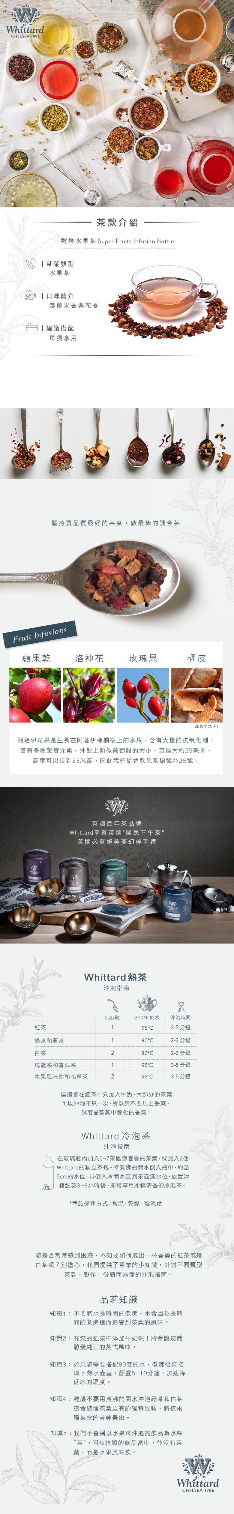 我們加入蘋果乾、玫瑰果、洛神花、枸杞,並使用素有「亞馬遜水果皇冠」和「生命之果」封號的巴西莓果粉(又稱阿薩伊漿果acai berry)特調而出,此款為莓果香氣濃郁且無咖啡因的健康花草茶。