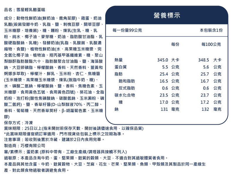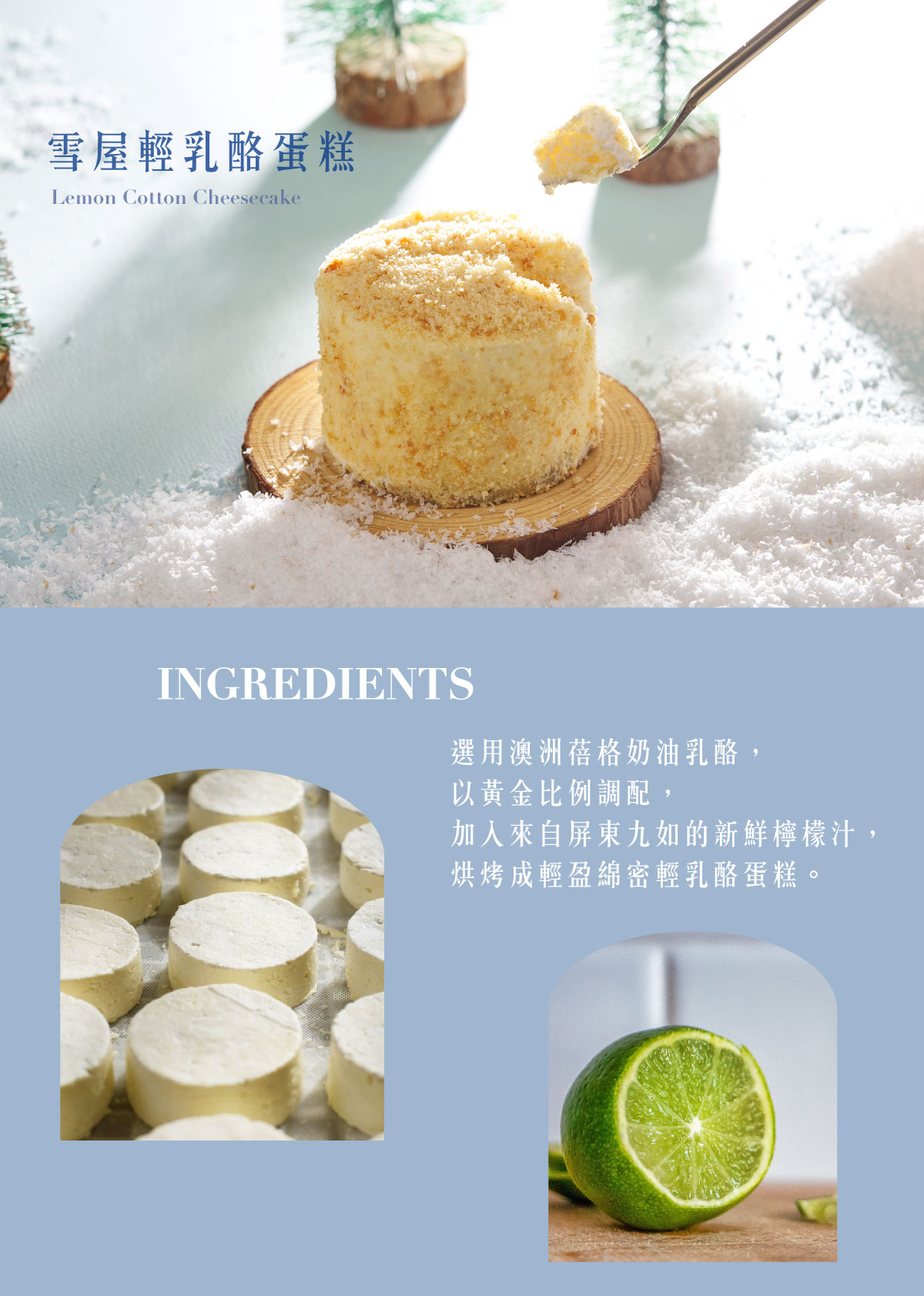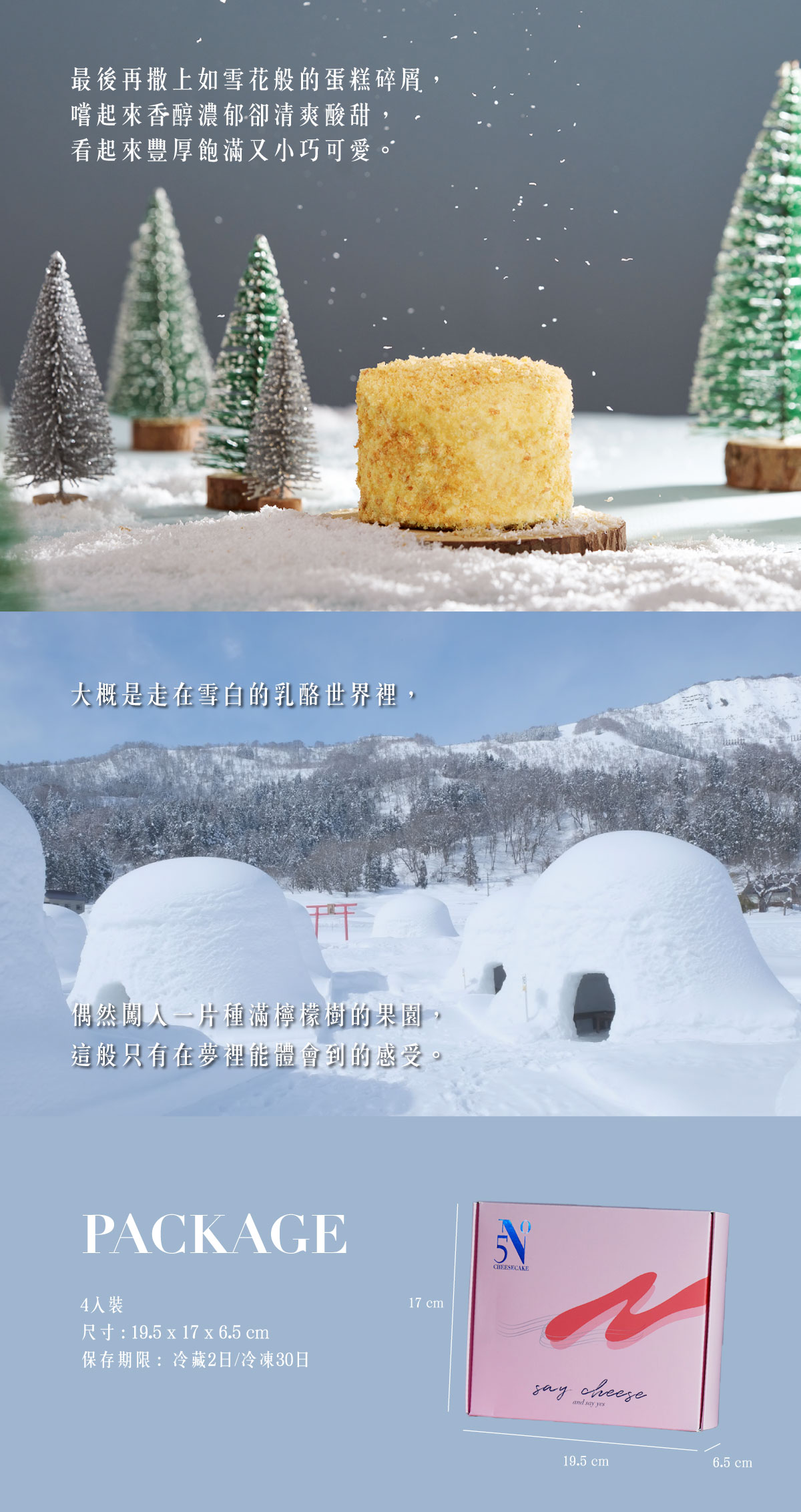 商品內容名稱:雪屋輕乳酪蛋糕(4入)貨號:011501121材質:食品尺寸:約 19.5 ×17 × 6.5 公分