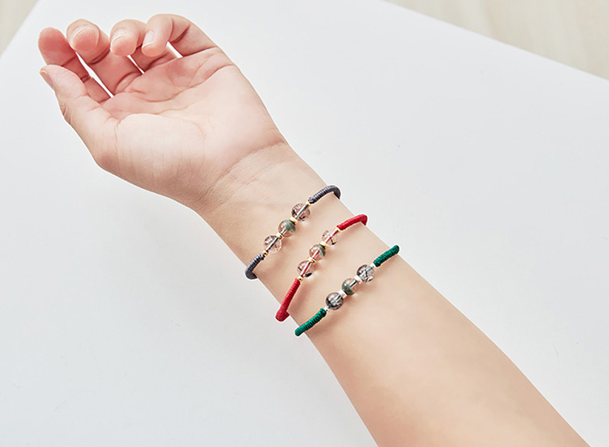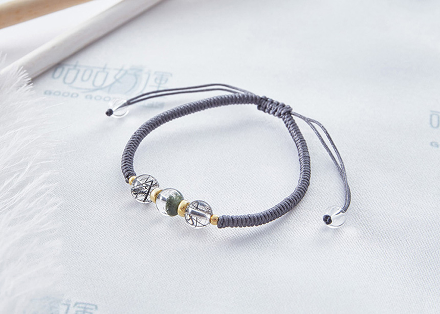 極旺財5A黑髮晶綠幽靈手鍊單入-灰繩|《含開光》吸引貴人|十倍事業運|提升正能量(情侶款)|咕咕好運GoodGoodLuck