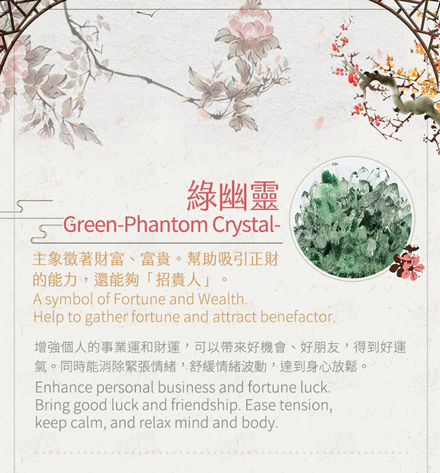 綠幽靈能幫助防小人、招貴人、招財運,提升整體自我氣場。