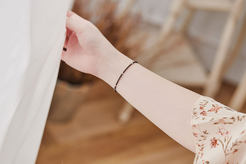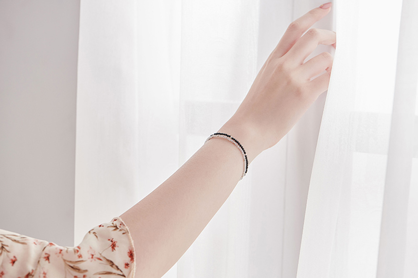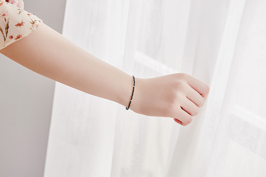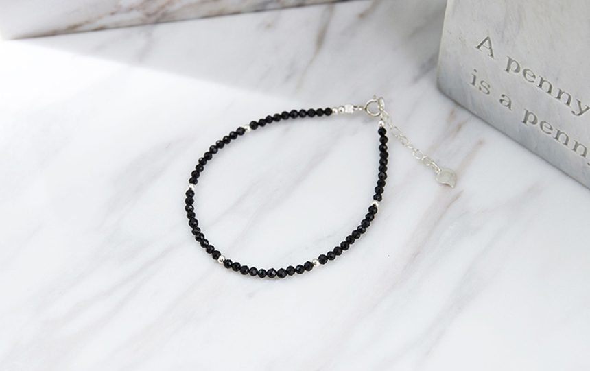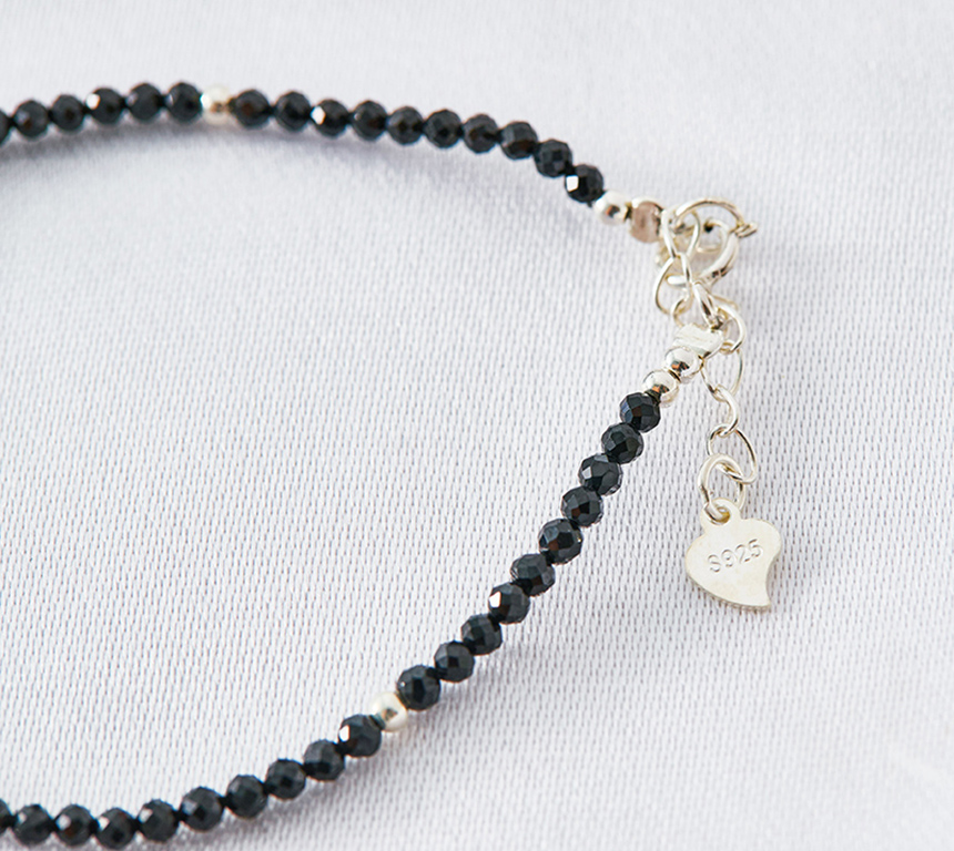 吸引異性天然白水晶黑尖晶氣質925純銀細手鍊|《含開光》招桃花|增加女性氣息|提升正能量|