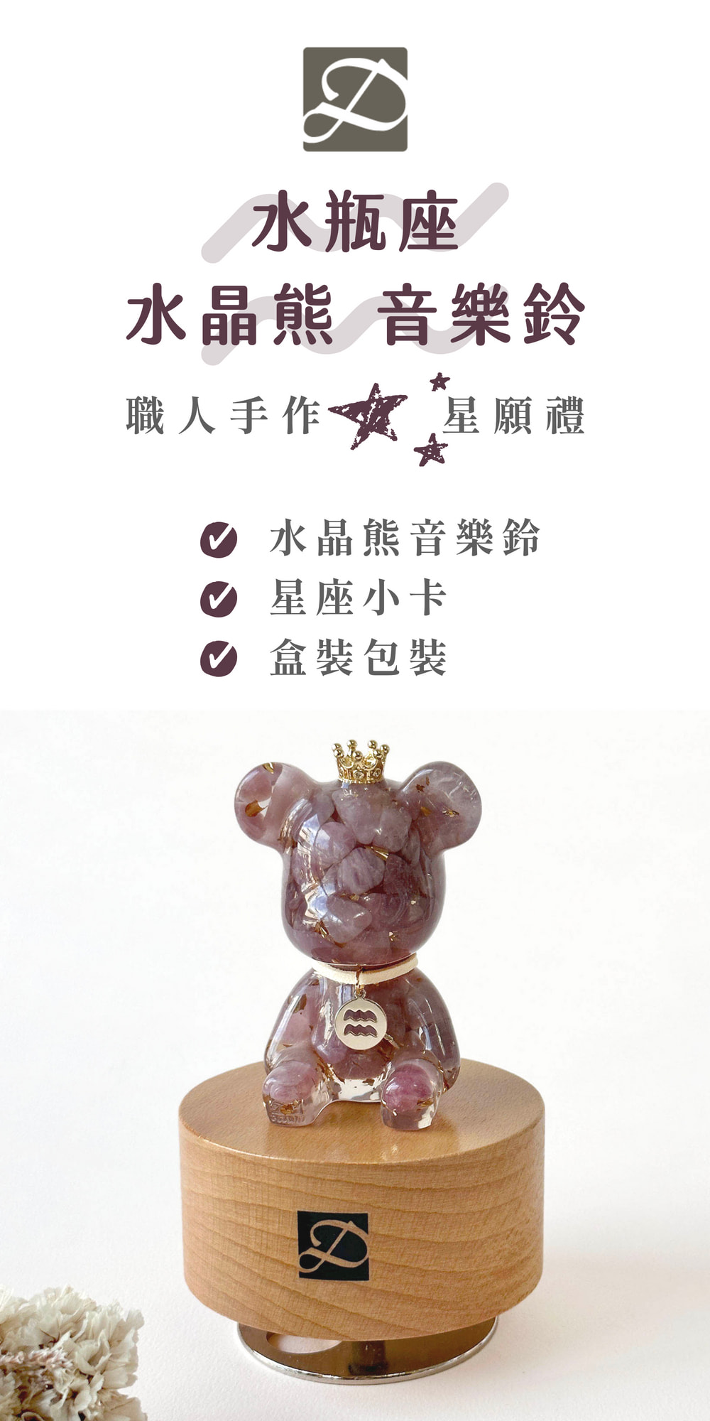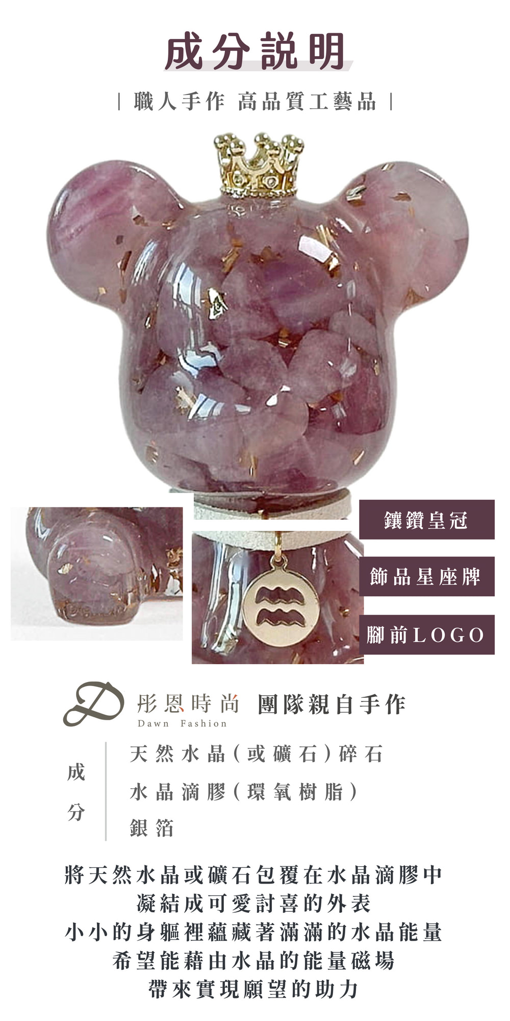 ✦ 星座水晶熊材質:水晶滴膠、天然晶石、金箔