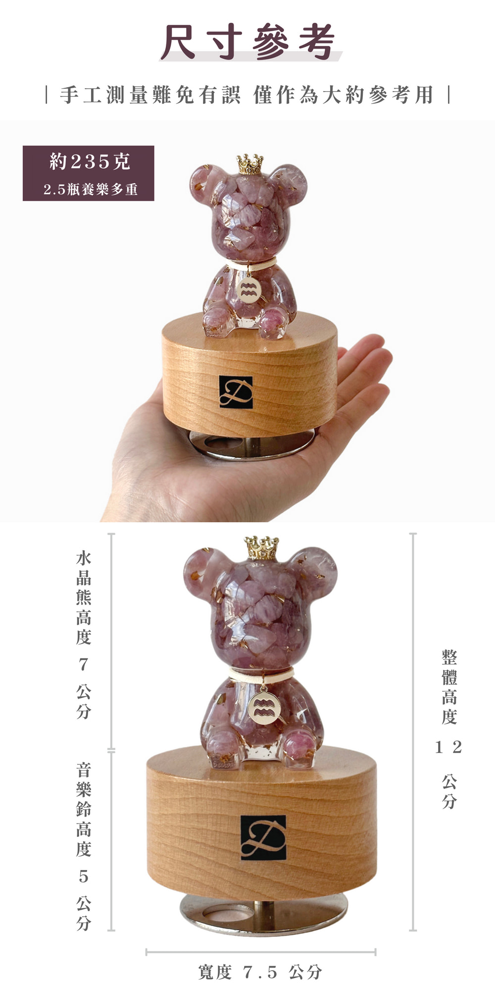 ⚠️水晶熊已固定於音樂鈴上,無法自行拆卸