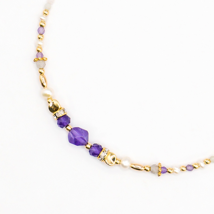 紫水晶、摩根石、拉長石、淡水珍珠、黃銅鍍18K金