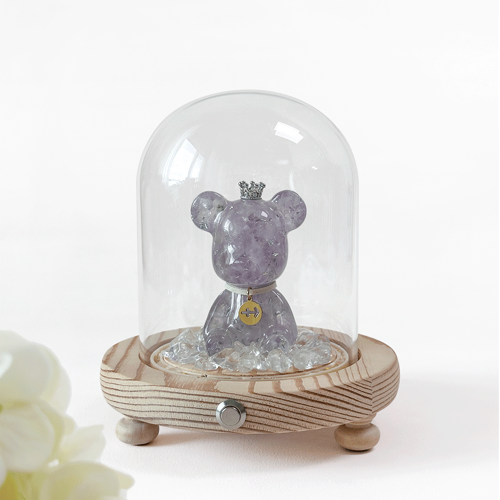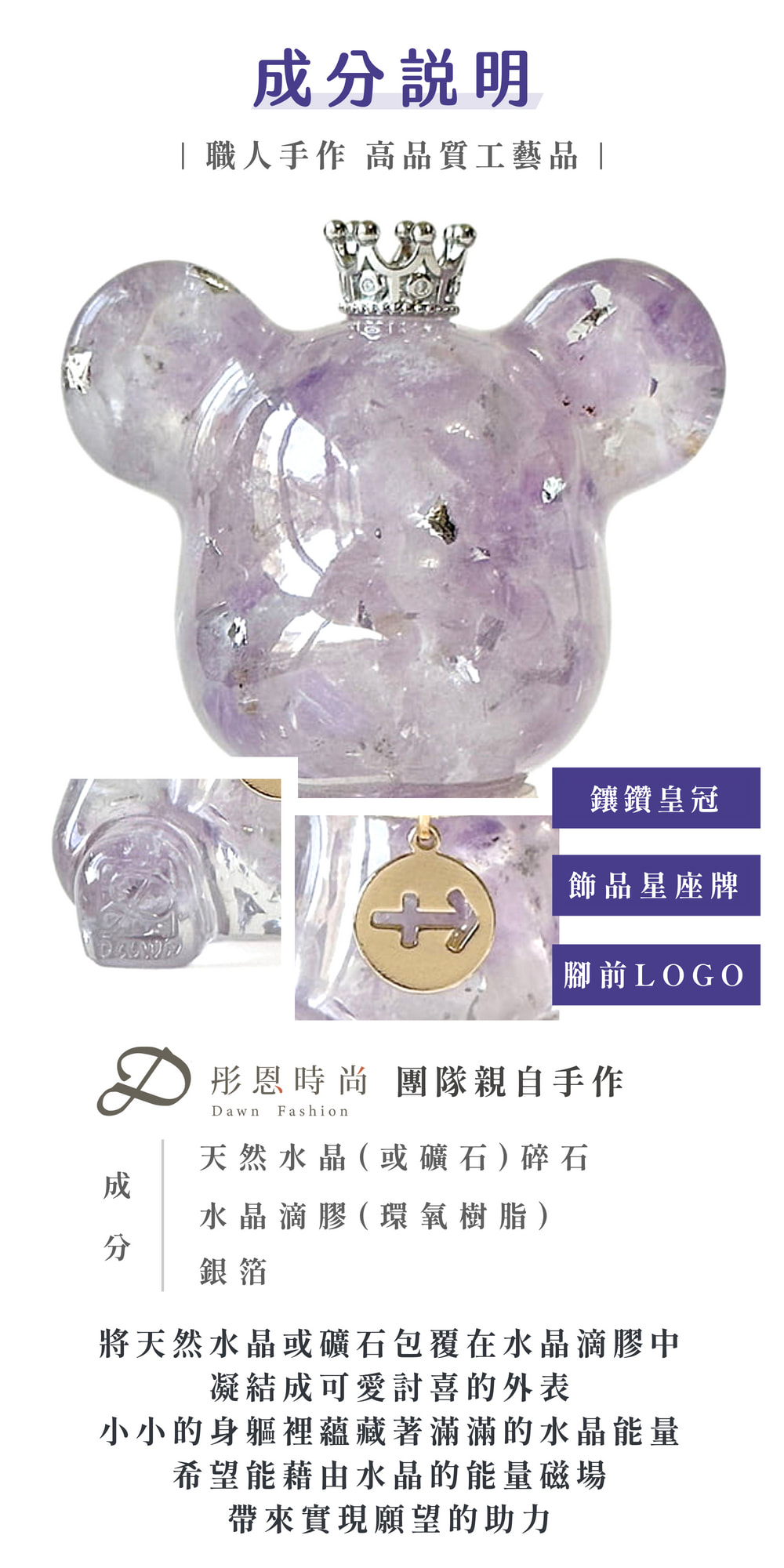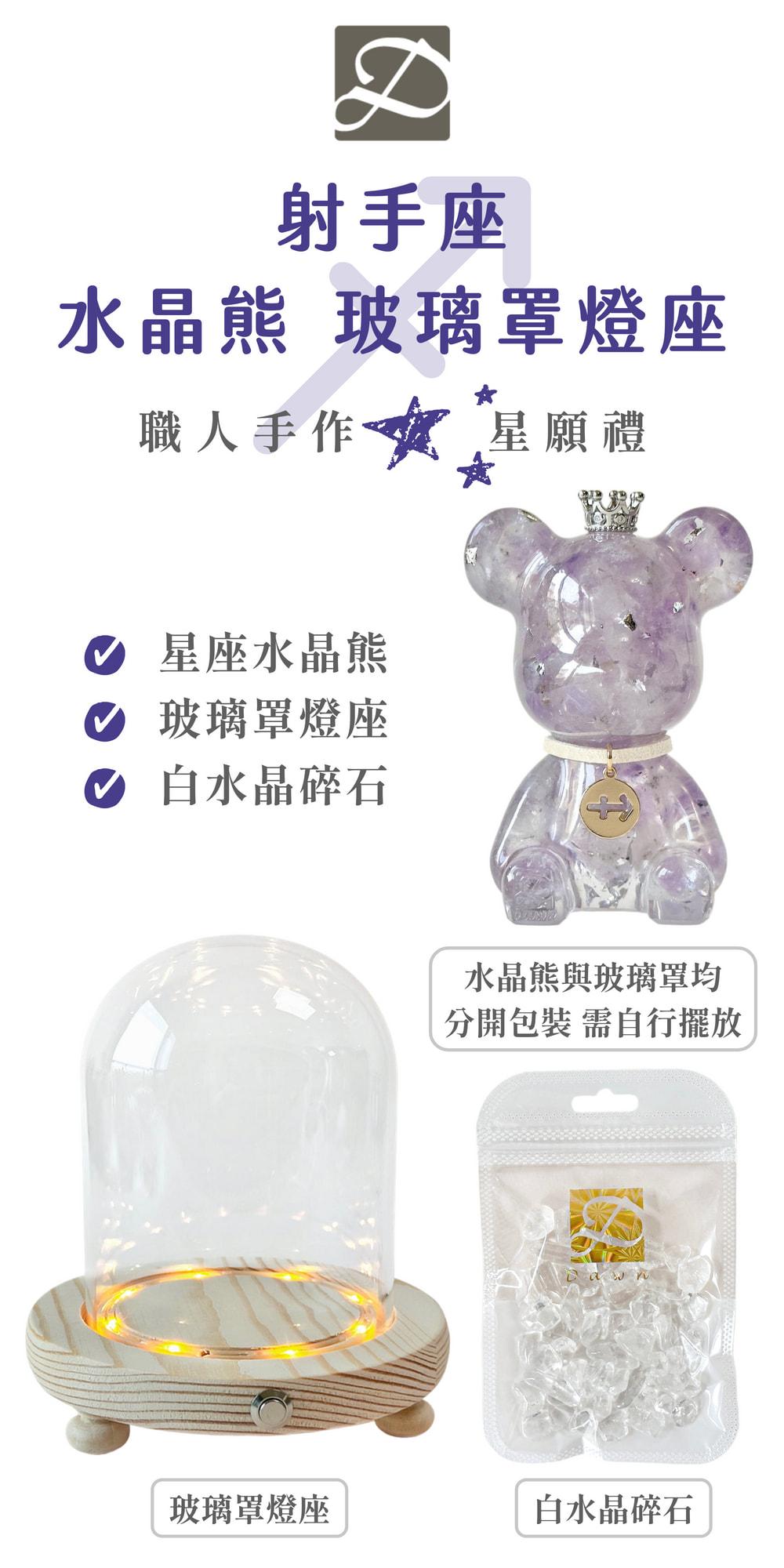 ◿ 商品內容:星座水晶熊1隻+玻璃罩燈座1個+白水晶碎石40克1包