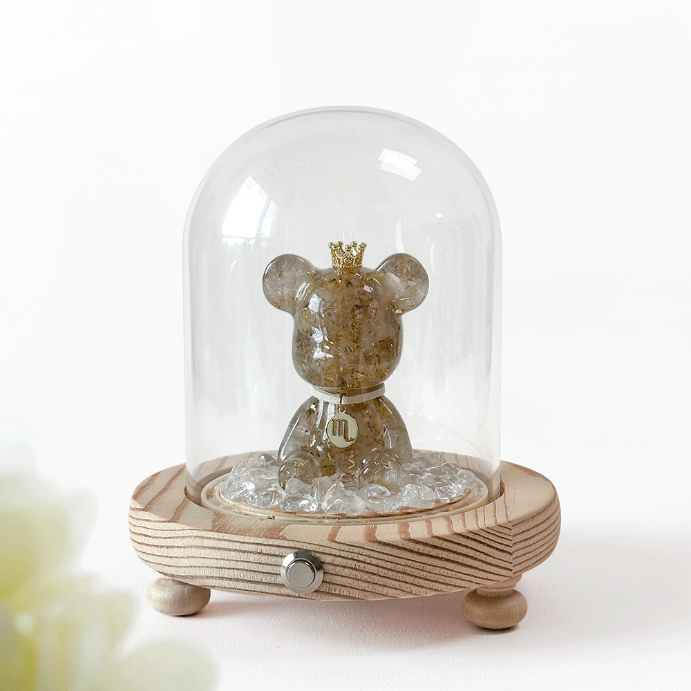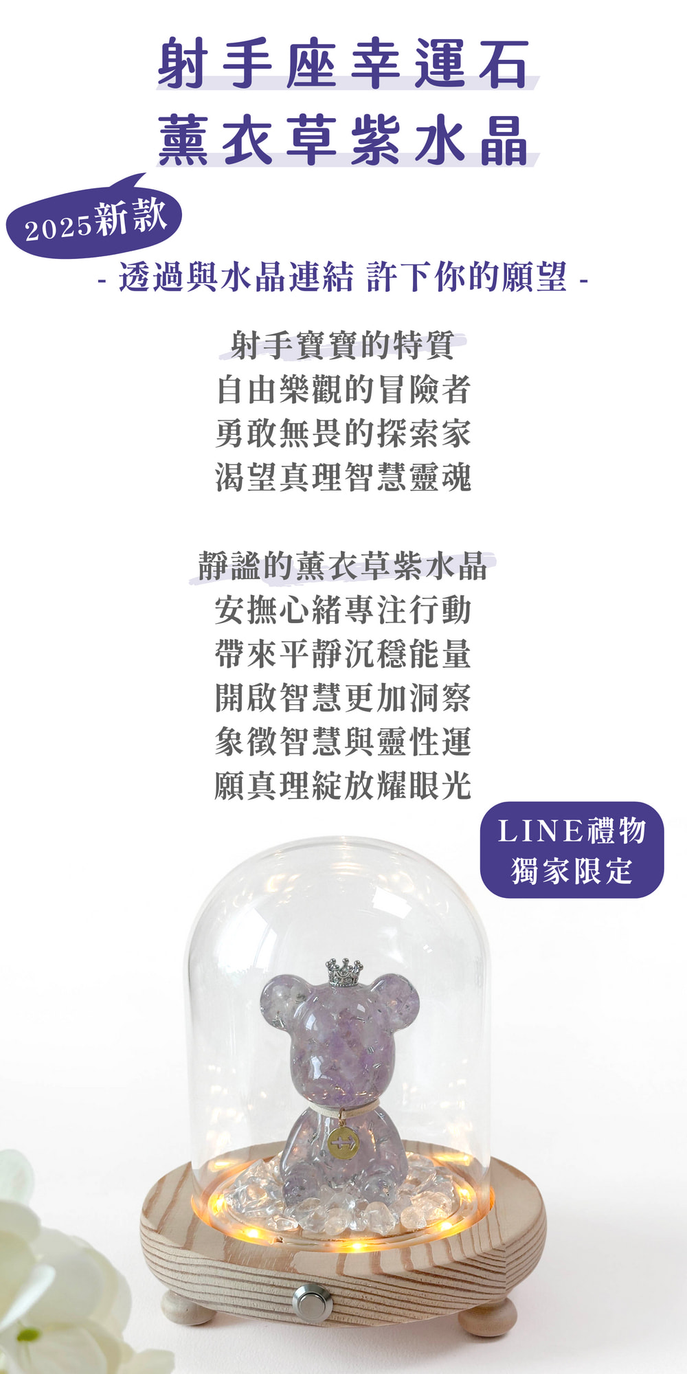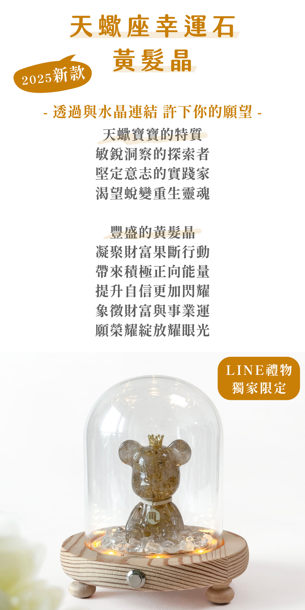 ◿ 商品內容:星座水晶熊1隻+玻璃罩燈座1個+白水晶碎石40克1包