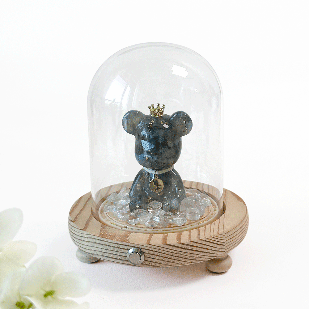 ◿ 商品內容:星座水晶熊1隻+玻璃罩燈座1個+白水晶碎石40克1包