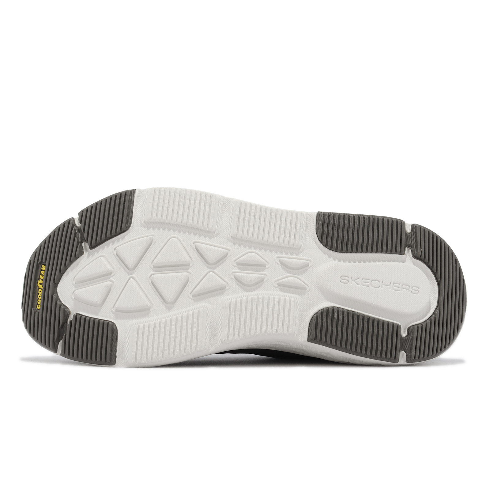 *3.大底鞋頭和後跟處高磨耗區添加GOODYEAR 固特異橡膠大底,提升鞋底的耐用度,提供超乎想像的耐用性、穩定性和抓地力。(大底橡膠來自美國俄亥俄州的百年國際知名橡膠輪胎品牌固特異,每雙SKECHERS x GOODYEAR的鞋款,都配置有保證固特異真品輪胎橡膠的GOODYEAR雷射標籤吊牌。杜絕仿冒,請認明真品)。