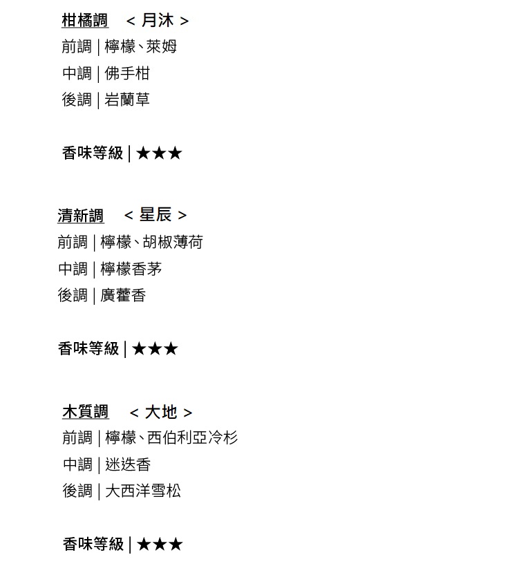 組合規格 : 微風 / 月沐 / 星辰 / 大地 50ml x 各一