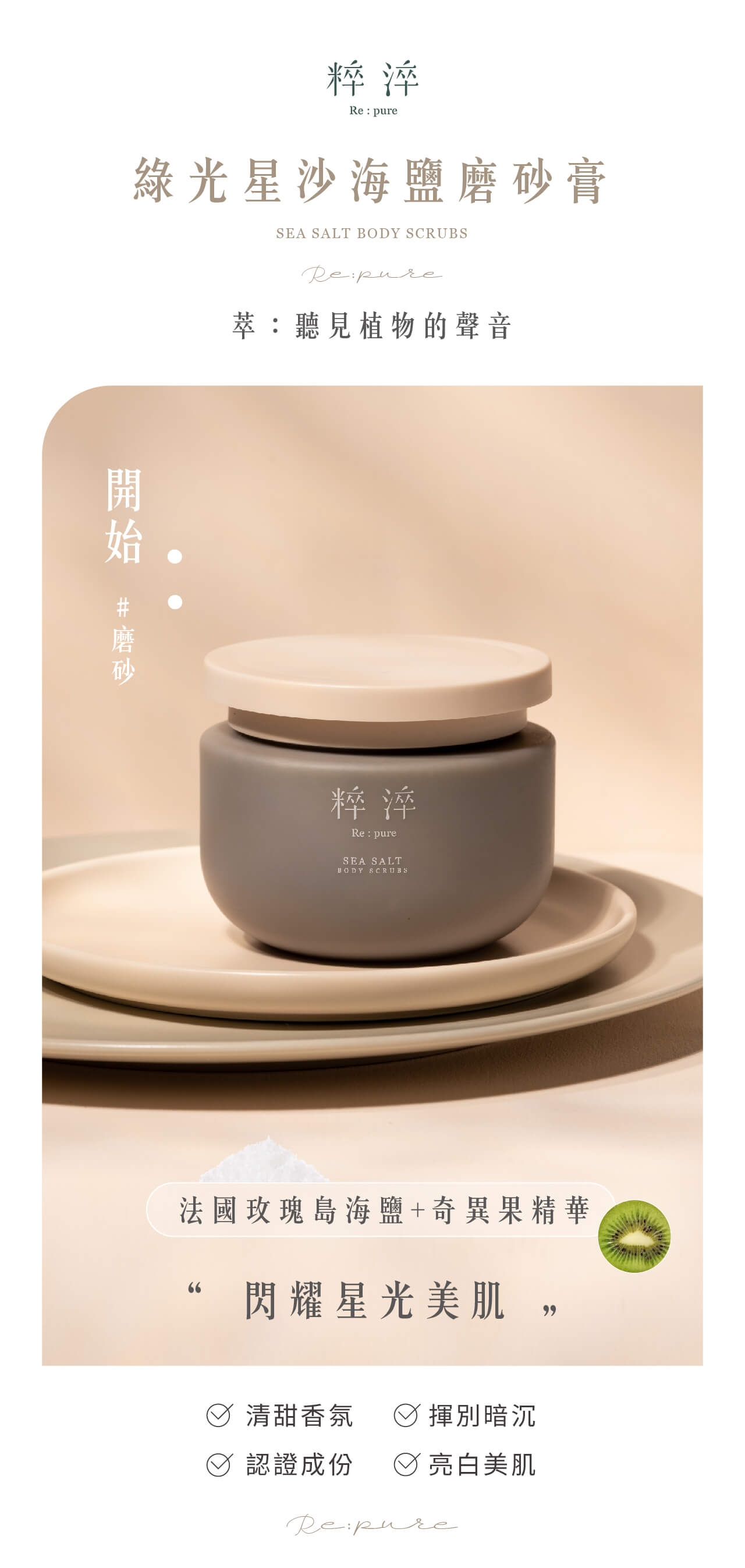 商品訴求:綠光星沙磨砂膏,敏感肌也可以使用的磨砂膏。