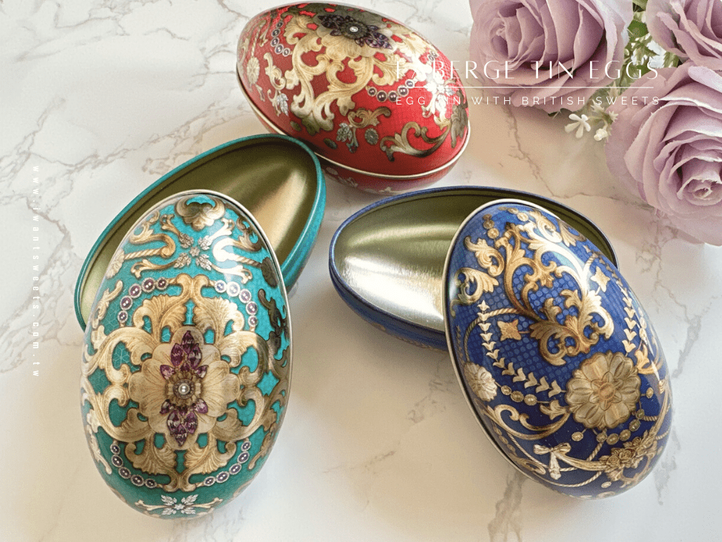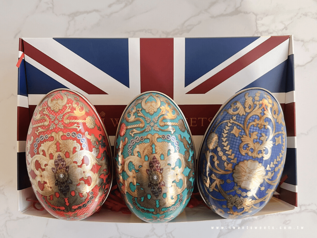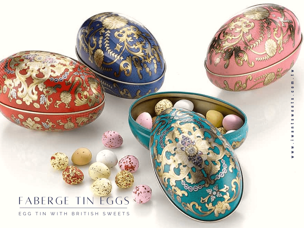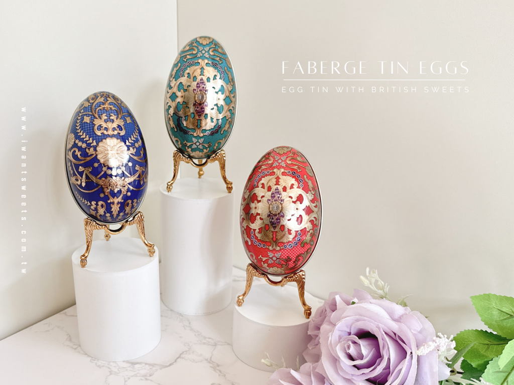 名 稱:Faberge Tin Eggs 新繽紛大彩蛋糖果禮盒-3款入 | Faberge Tin Eggs Tin with British Sweets - Set of 3