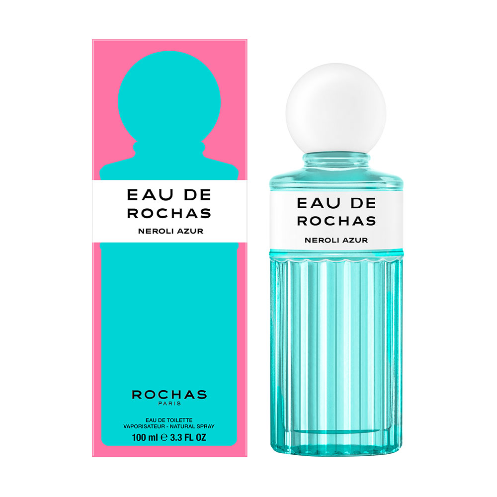延續 Eau de Rochas 經典設計,俐落現代感重新演繹。瓶身線條修長、波紋流動,圓形瓶蓋以純白呈現,蔚藍色玻璃與外盒上的粉紅色調形成鮮明對比。從第一眼起,蔚藍橙光淡香水就如同一場跳入蔚藍海水的清涼冒險。