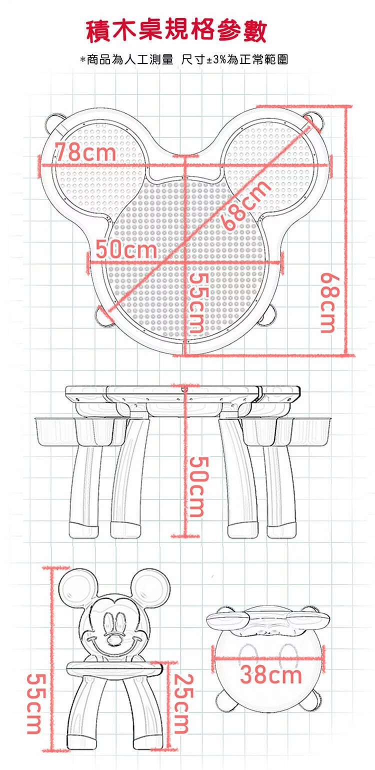 迪士尼官方正版授權,最理想多功能兒童遊戲椅(請搭配迪士尼遊戲桌使用)可愛米奇造型,安全圓潤無稜角的椅子