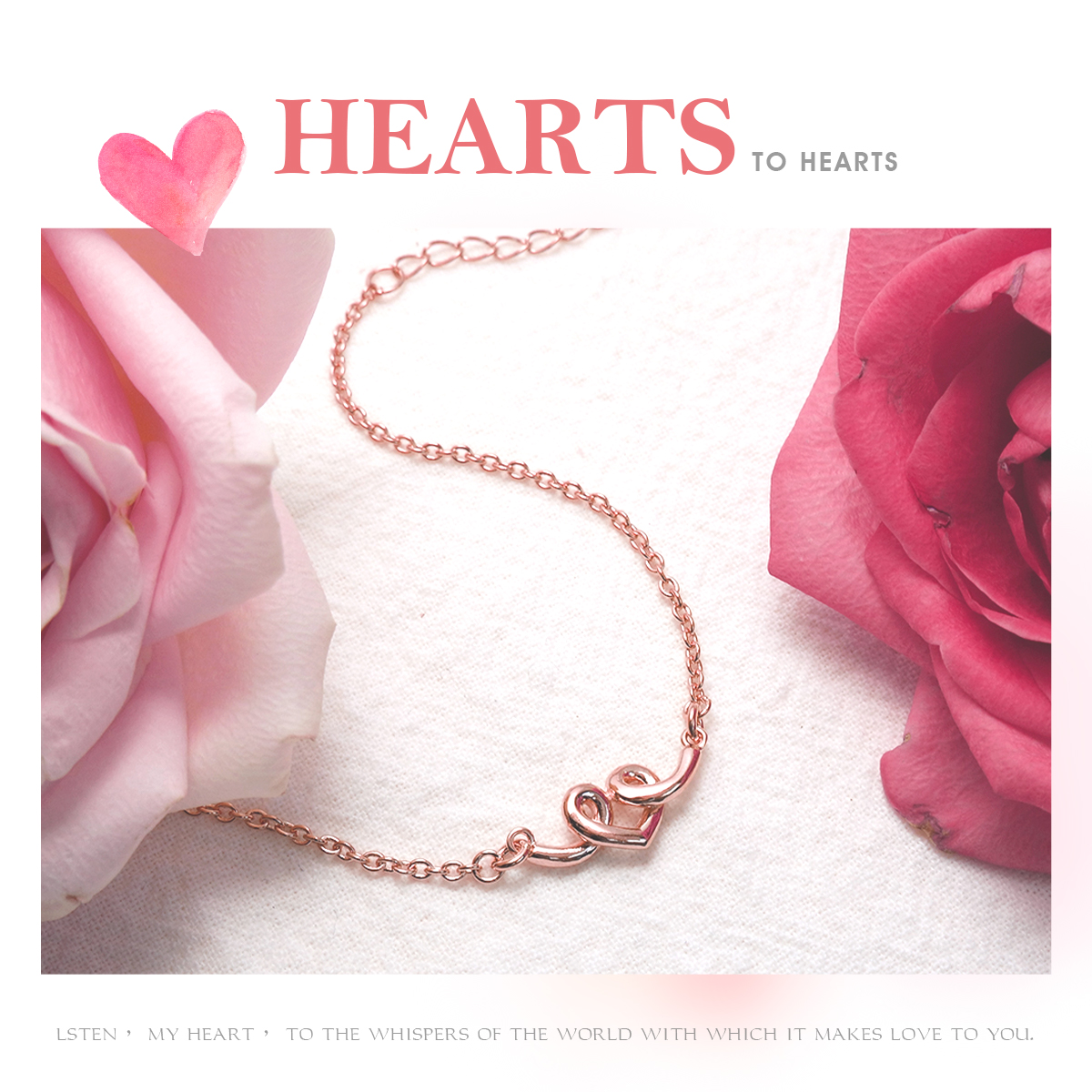 STORY故事銀飾-纏綿的心純銀手鍊(玫瑰金)