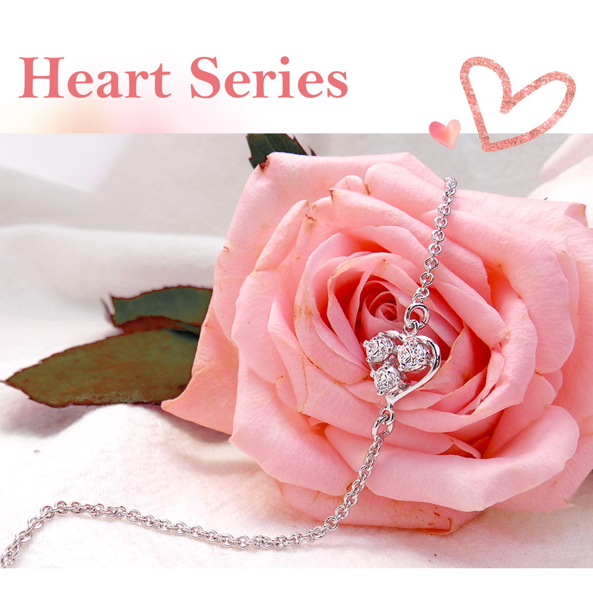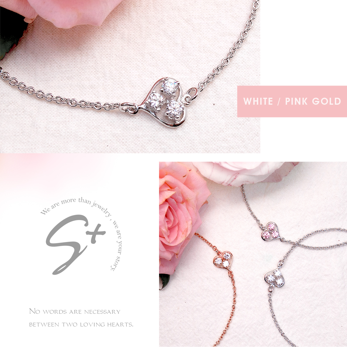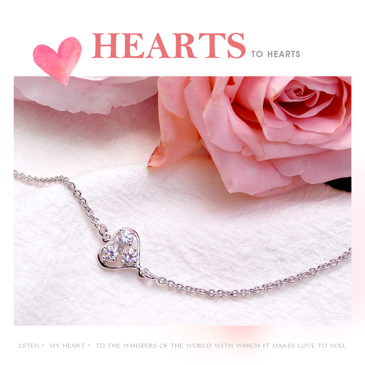 STORY故事銀飾-明亮的心純銀手鍊(白K金+白鑽)