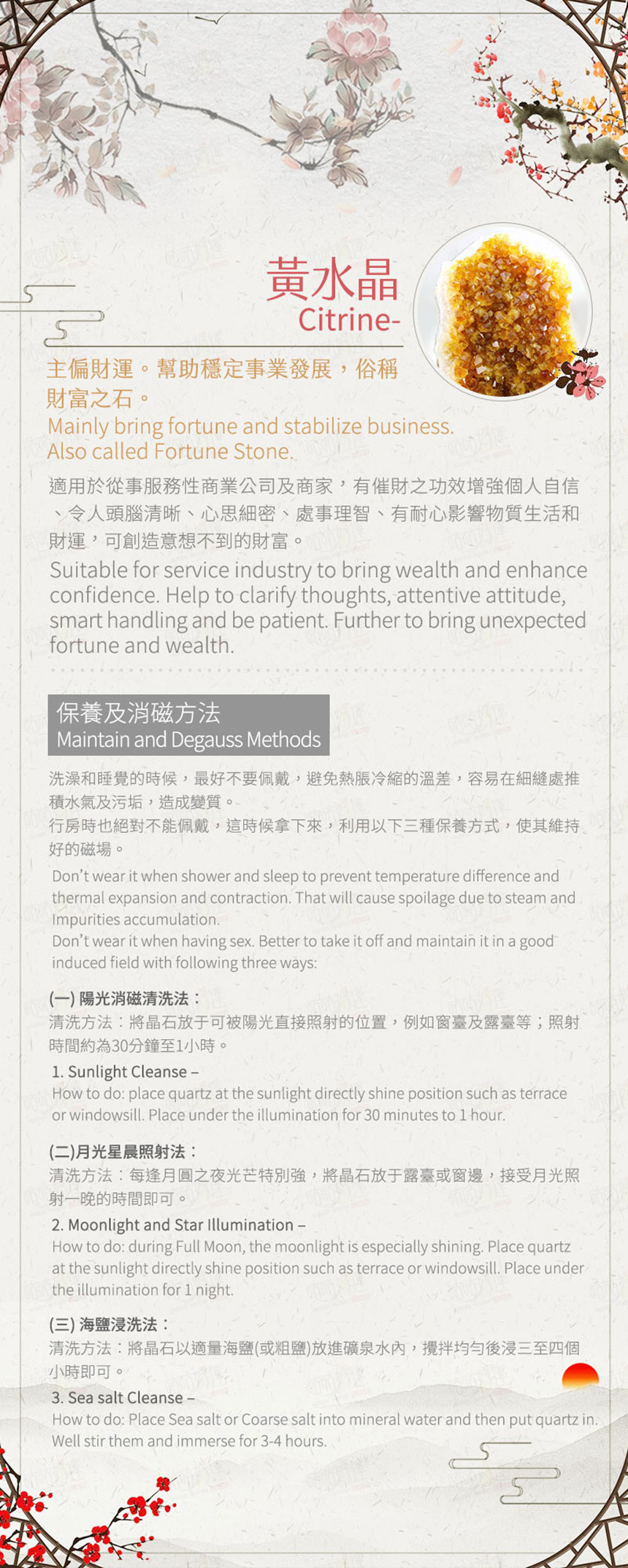 『幫助工作運』黃水晶能幫助招財、偏財、旺事業,達到整體運勢提升。兔年發大財,錢財滾滾來~美麗與時尚兼具!