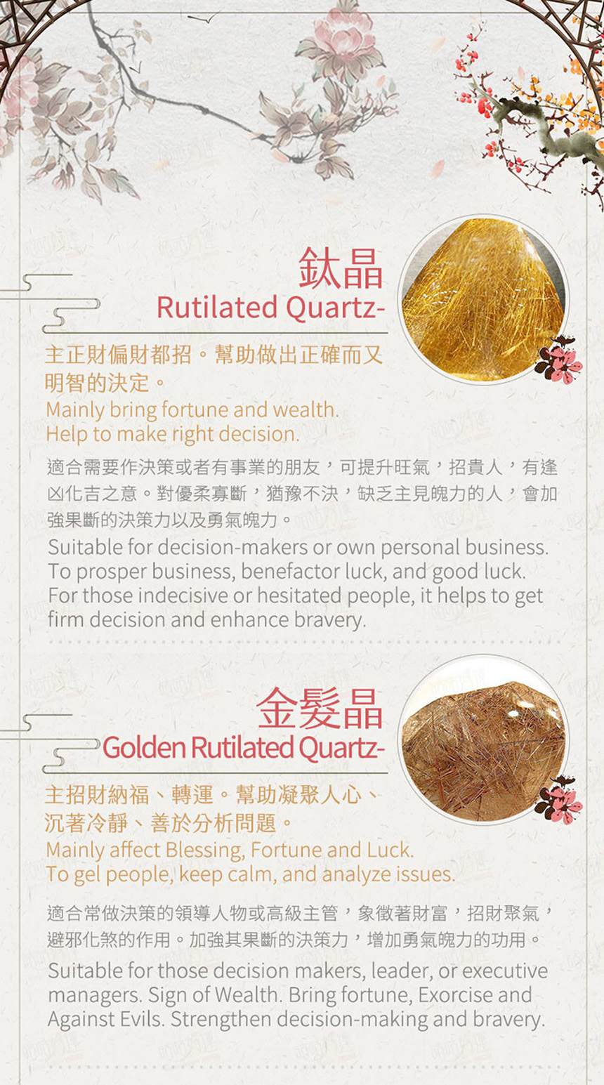 提升靈感,增加職場判斷力。黃髮晶能幫助招財、偏財、旺事業,達到整體運勢提升。